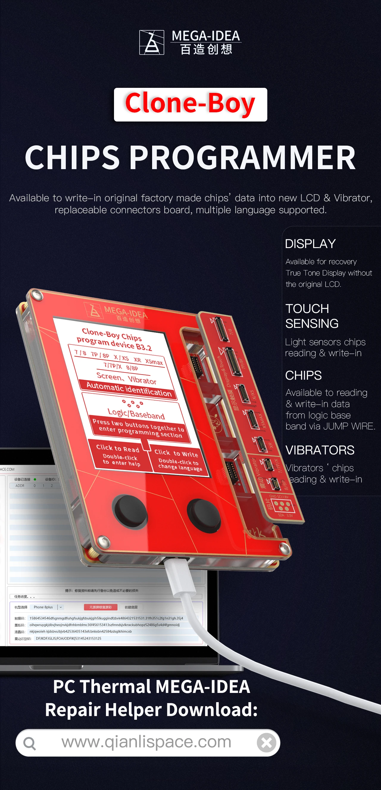 Программатор QianLi Mega-Idea для ремонта ЖК-экрана, вибрацияфоточу...