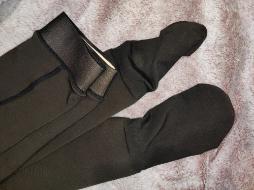 Очень тепло они немного туго в животе, но хорошо. Единственное, что внешний слой похож на средний, ноготь был немного поврежден, и он немного сломался, надев их как обычные чулки.