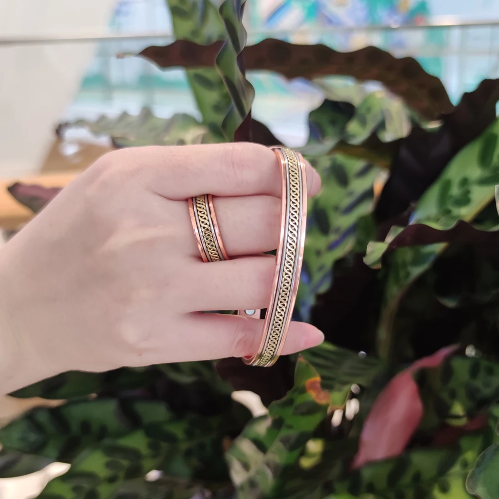Набор украшений из чистой меди для женщин, витые открытые манжеты, регулируемый медный магнитный браслет, серьги, кольцо для магнитной терапии при артрите