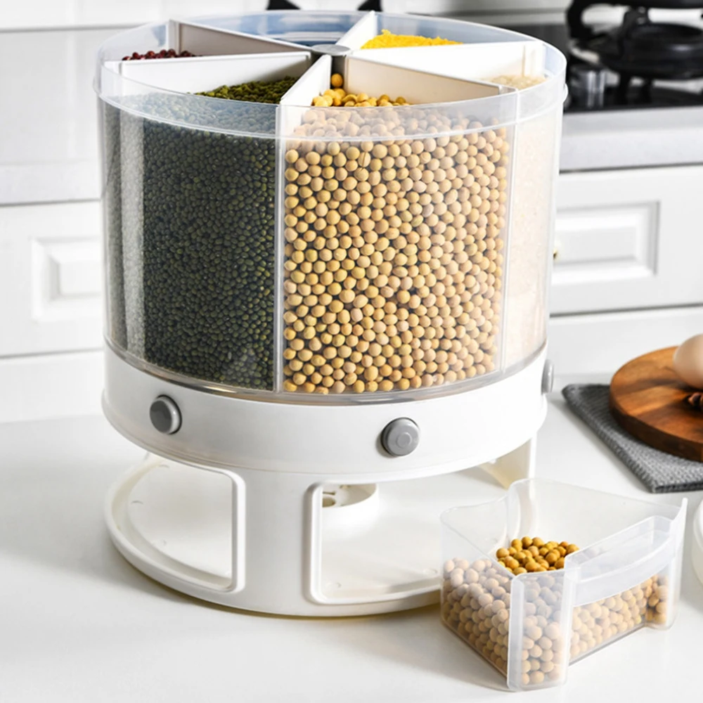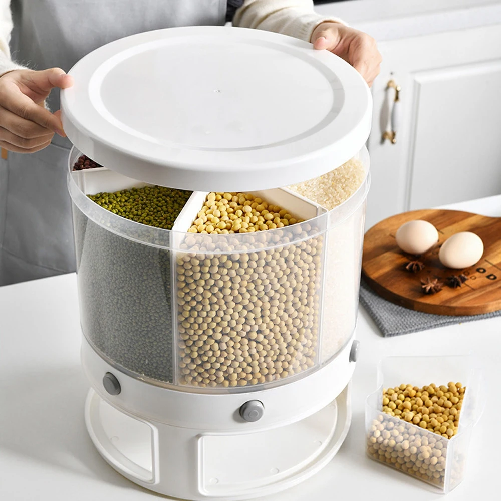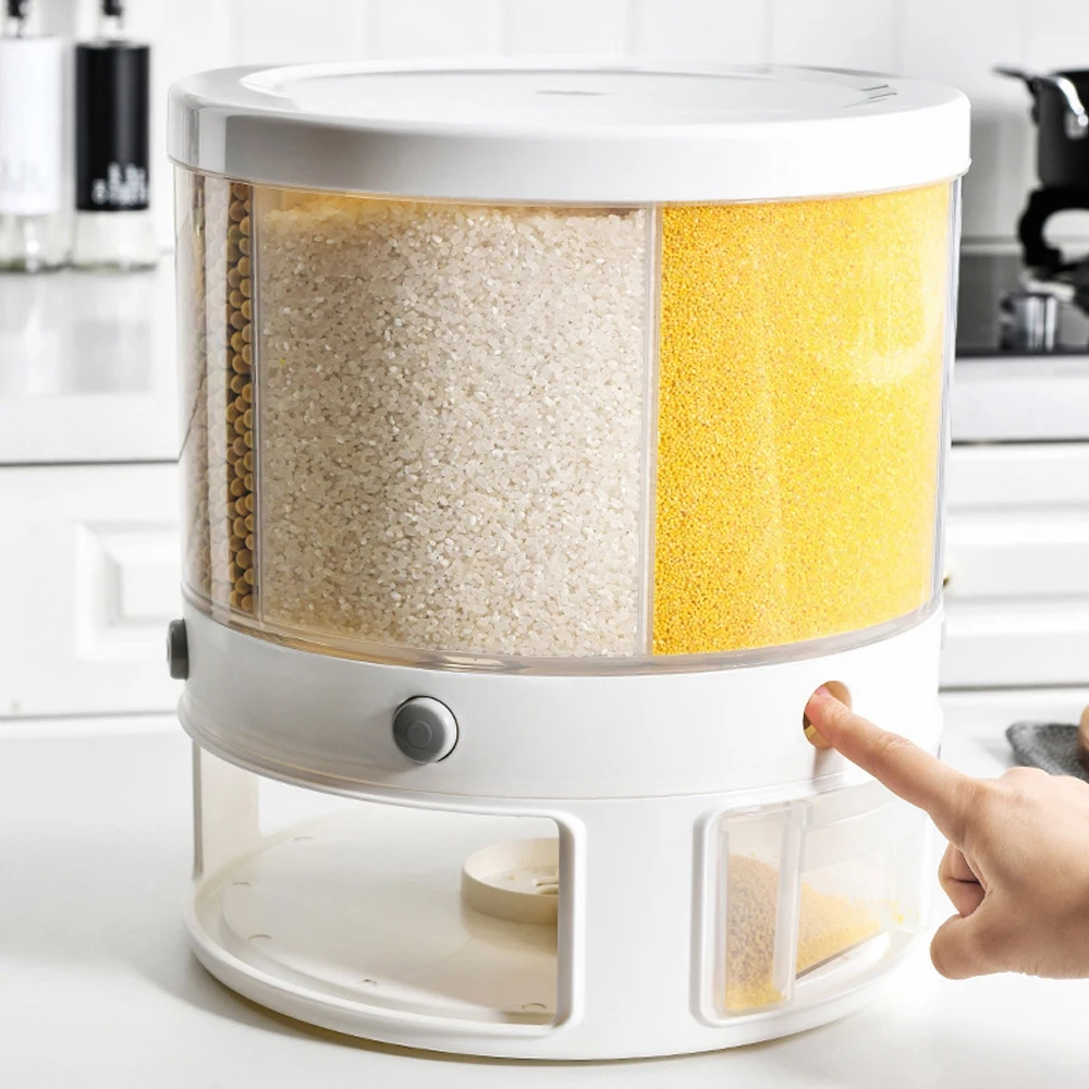 Вращающаяся коробка для хранения пищевых продуктов, многофункциональный разделитель, ведро для риса, бытовой влагостойкий Органайзер 10 кг с защитой от насекомых, стеллаж для хранения