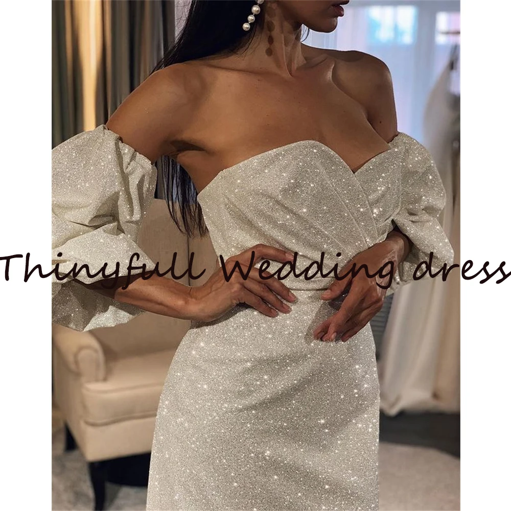 Современные Блестящие Свадебные платья до середины икры с коротким рукавом, пляжные свадебные платья в стиле бохо для невесты, свадебное платье, платье