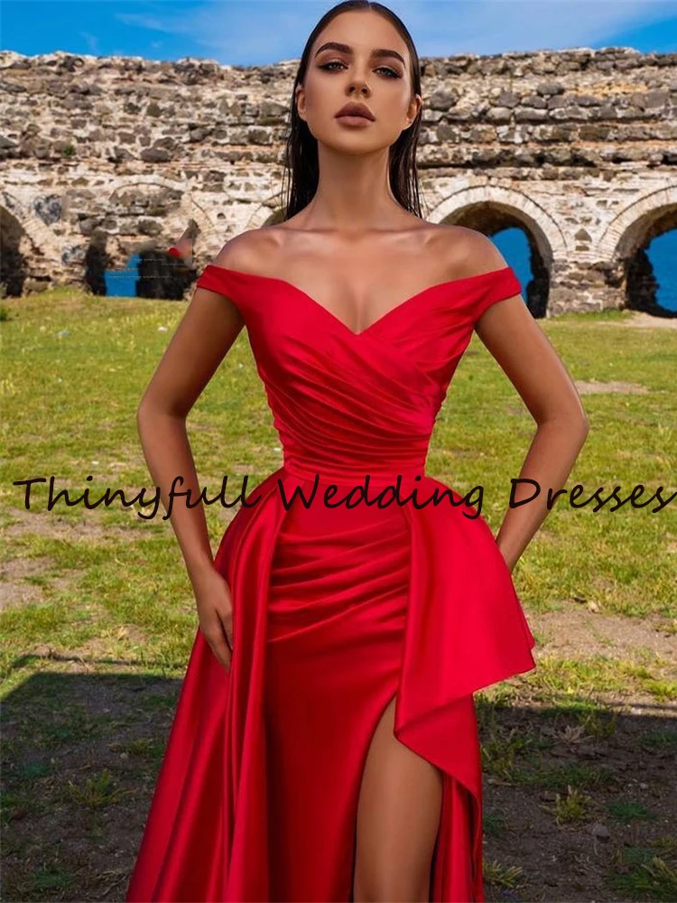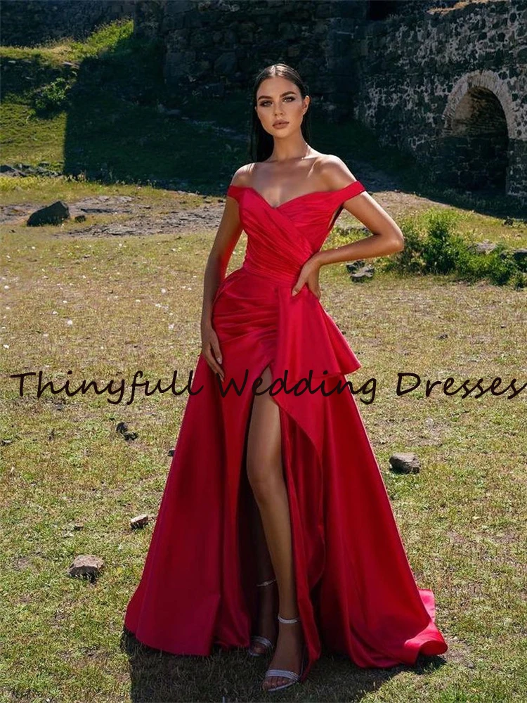 Новое Красное Длинное Платье-трапеция с Боковым Разрезом, свадебные вечерние платья без рукавов с открытыми плечами, вечернее платье принцессы, платья для вечеринки