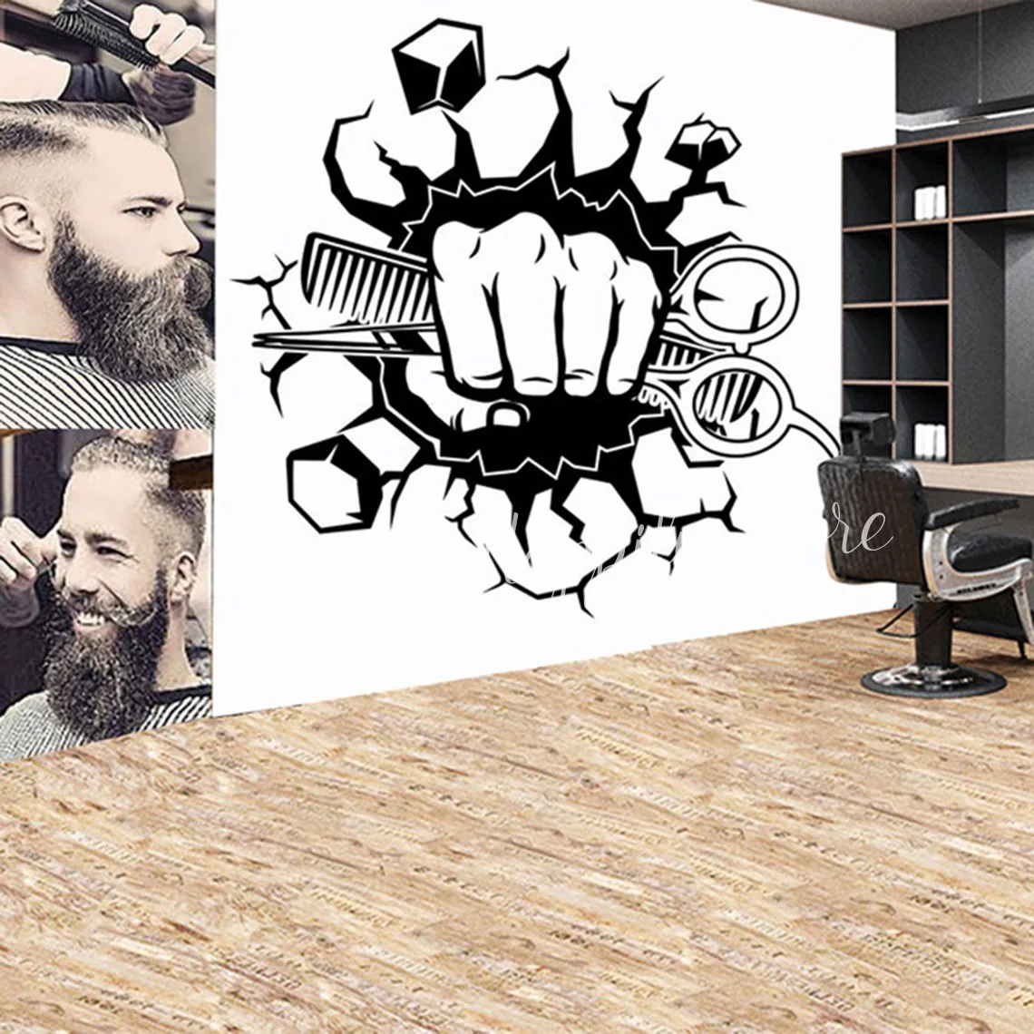 Настенные Переводные картинки для парикмахерской, украшение для парикмахерской, стрижки волос, бороды, бритья, яркие декоративные виниловые наклейки на стену P830