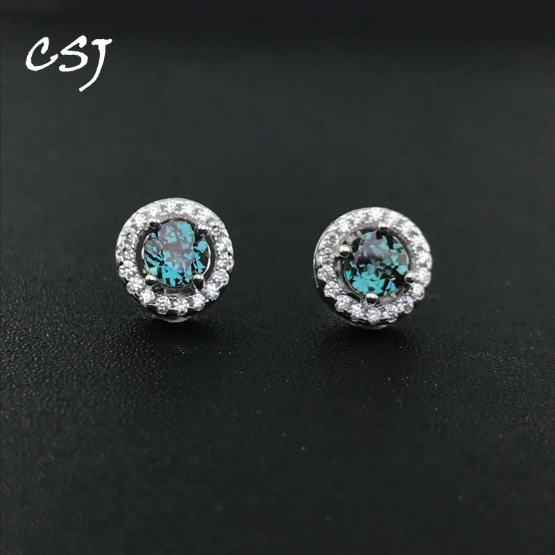 CSJ настоящая Лаборатория Grown александритовые серьги-гвоздики, серебро 925 пробы, драгоценный камень 5 мм, хорошее ювелирное изделие для женщин, леди, свадьба, помолвка, вечеринкаГлавный драгоценный камень: лабораторный выращиваемый александритРазмер камня: Круглый 5 мм