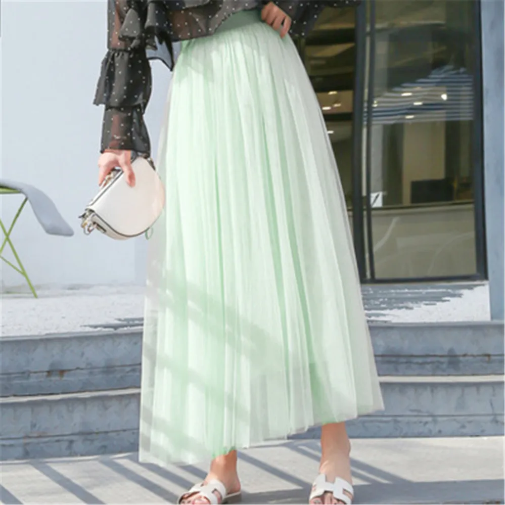 Женская плиссированная юбка-пачка, длинная винтажная сетчатая юбка с высокой эластичной талией, корейский стиль, весна-лето