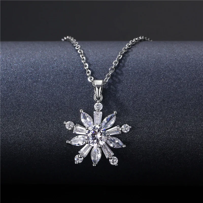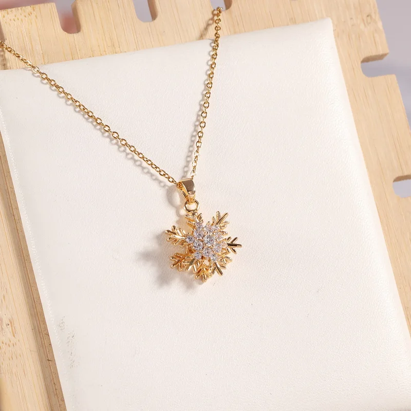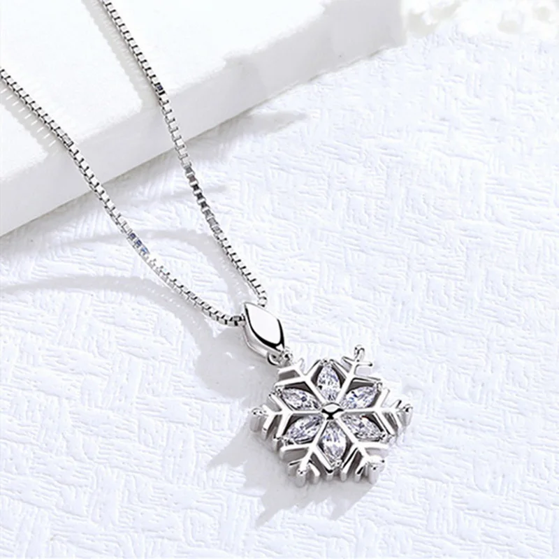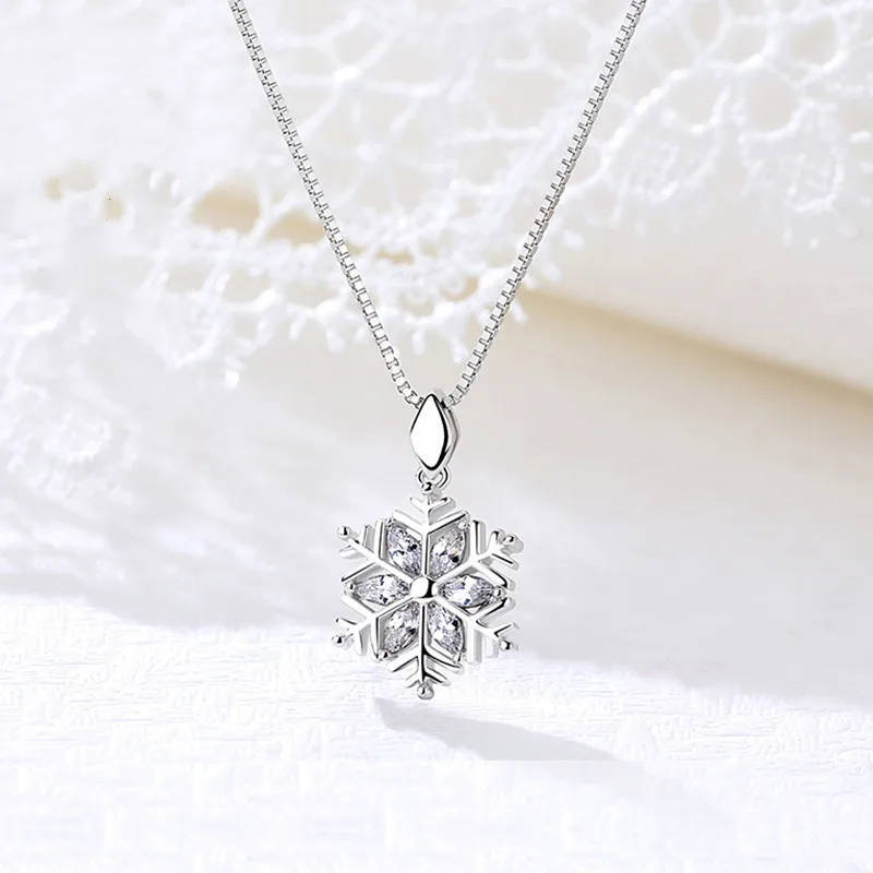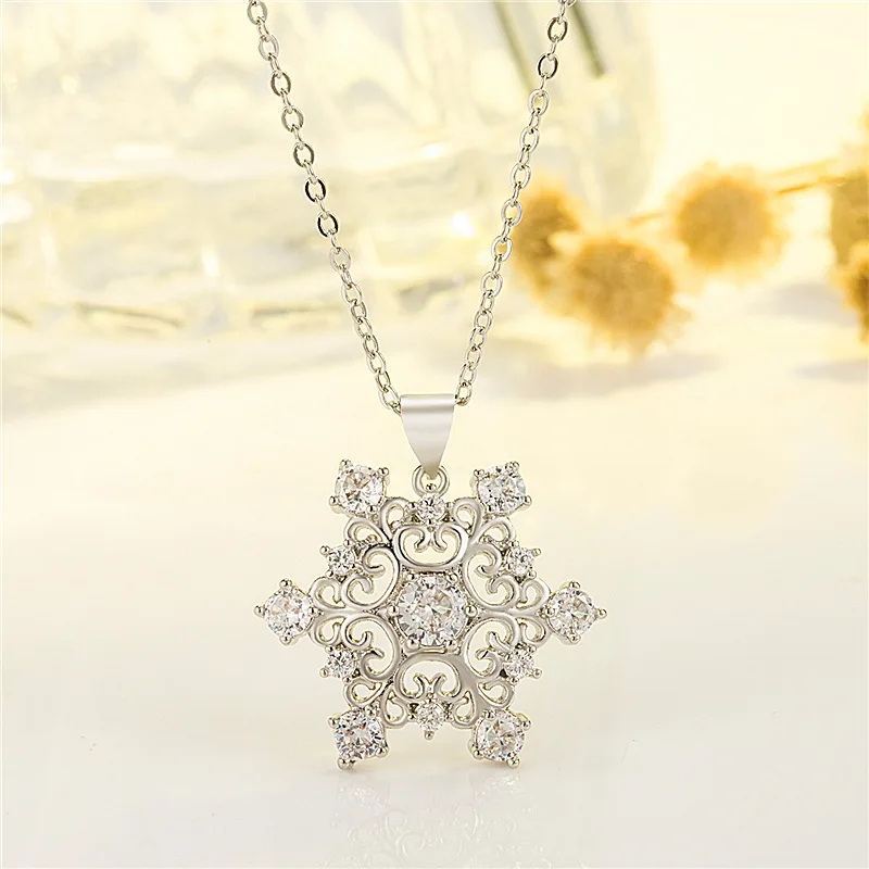 Рождественская Снежинка Nekclace для женщин медный цветок циркон кулон звено цепь ожерелье женские очаровательные ювелирные изделия