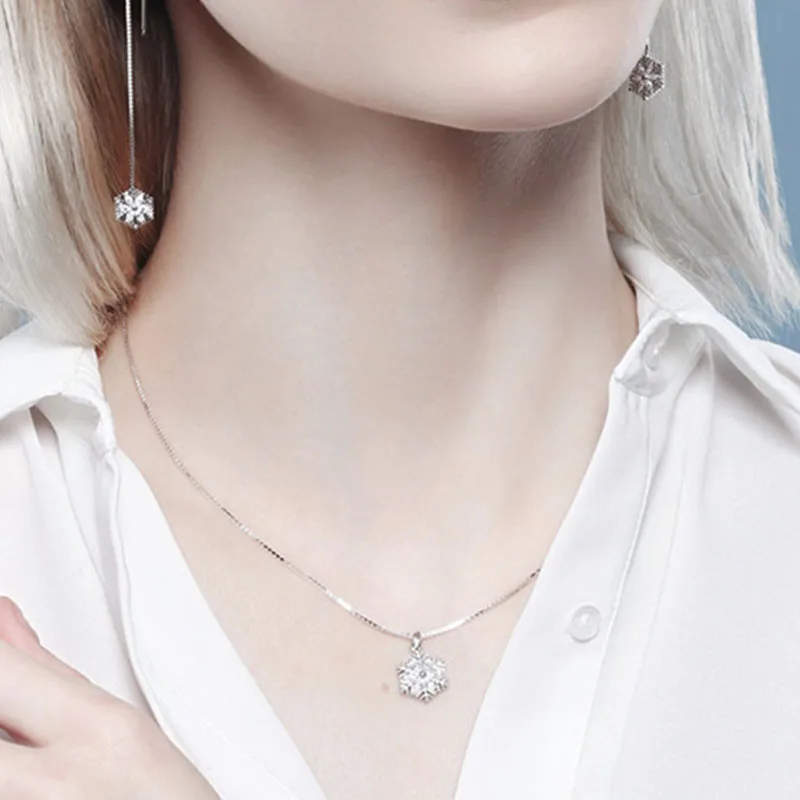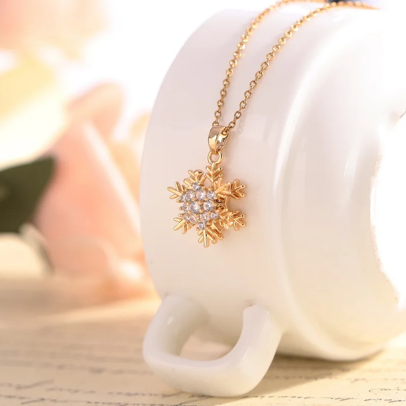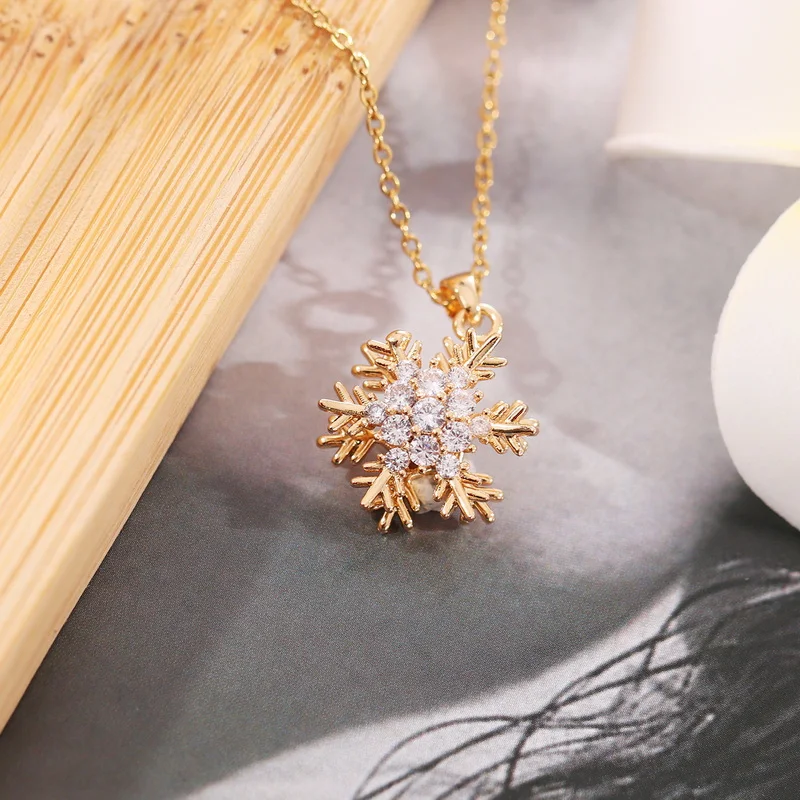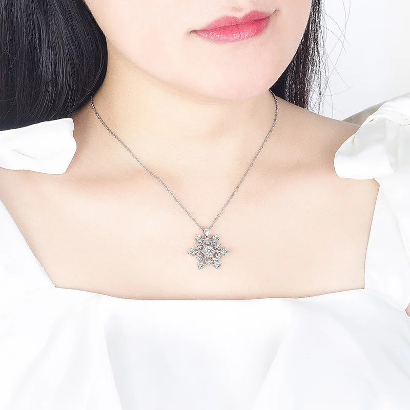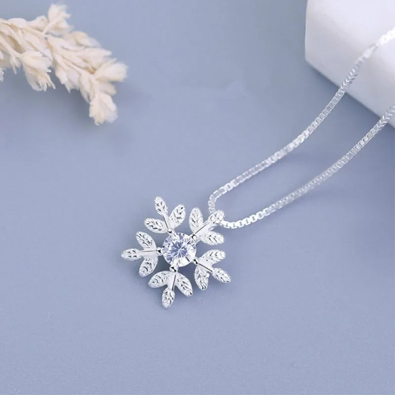 Рождественская Снежинка Nekclace для женщин медный цветок циркон кулон звено цепь ожерелье женские очаровательные ювелирные изделия