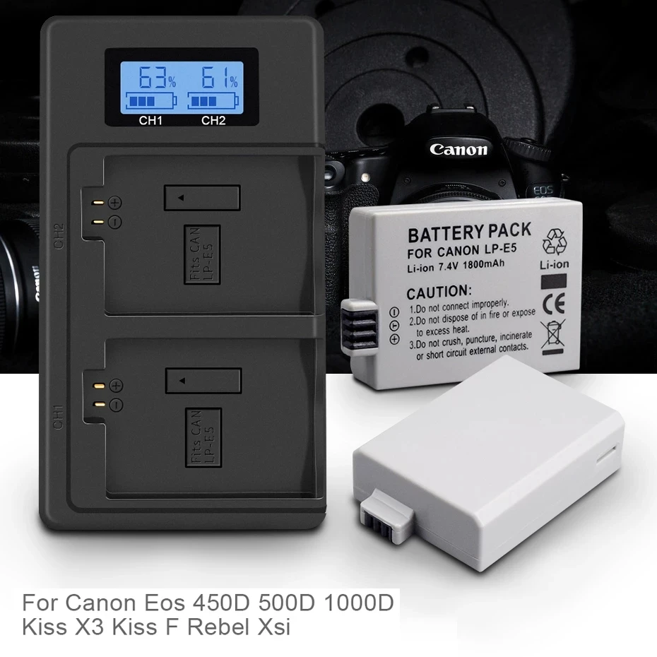 1800 мАч 7,4 В LP-E5 LP E5 камера батарея + ЖК USB Смарт LPE5 зарядное устройство для Canon 500D 450D 1000D Rebel Xsi Kiss X3/F батарея