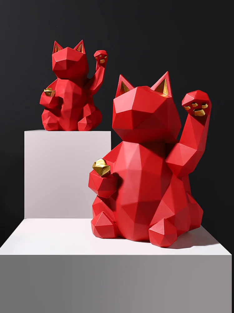 Счастливая статуя кота статуэтка животного абстрактных геометрическ...