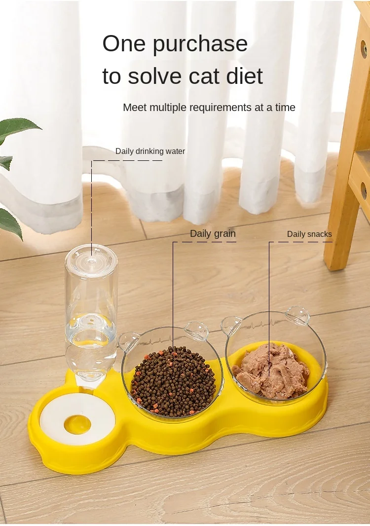 Товары для домашних животных, двойная чаша для кошек с влагостойким горлышком, три чаши, автоматическая водная кормушка, Противоударная чаша для домашних животных