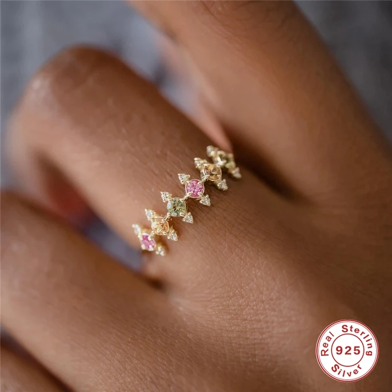 Женское кольцо из серебра 925 пробы, с цветным фианитом