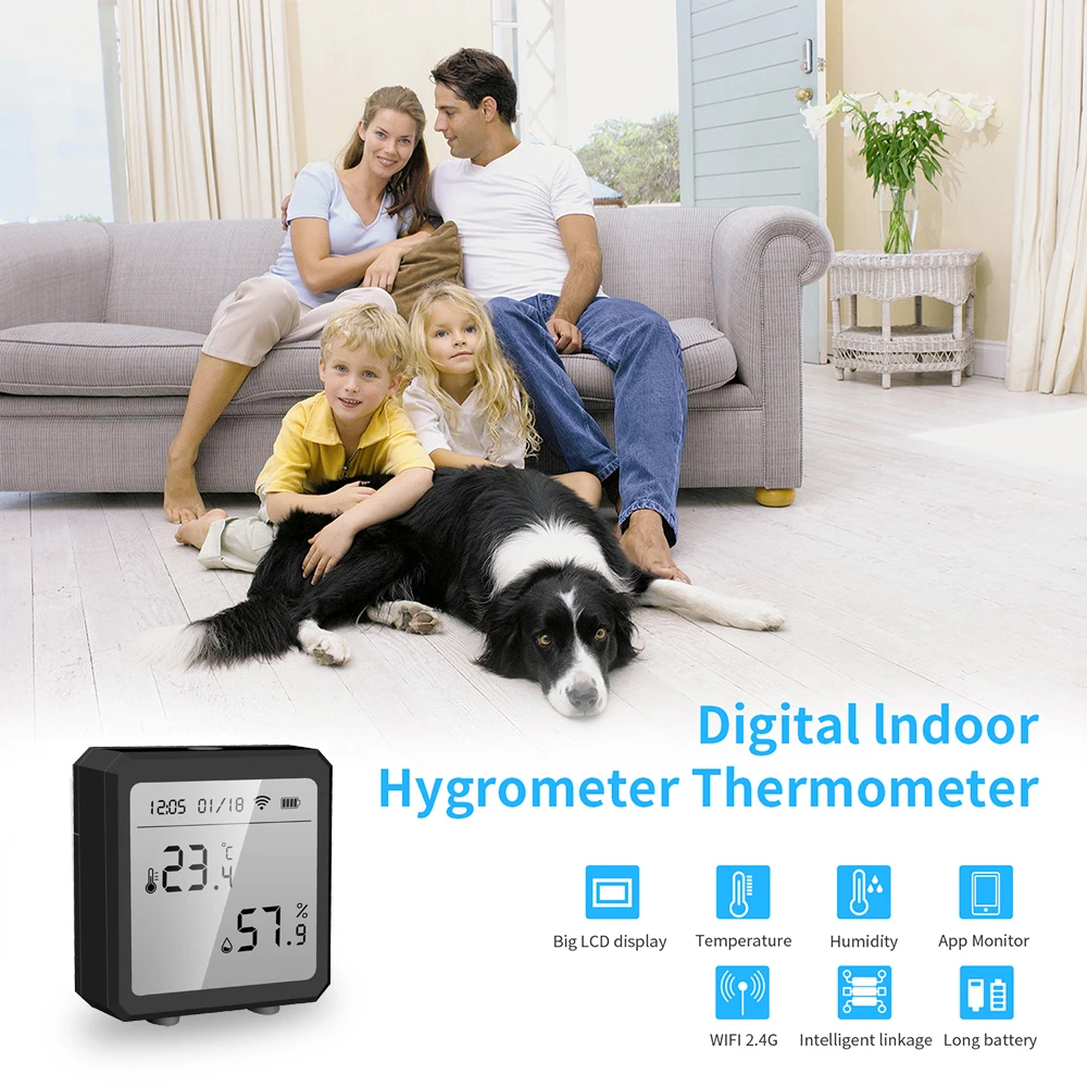 Датчик температуры и влажности Tuya WiFi, черный домашний гигрометр...