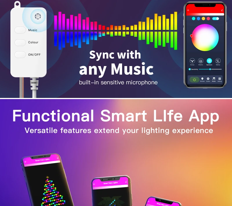 -Музыкальный Сказочный светильник ing: со встроенным микрофоном делает его «живым» светильник. Светодиодные лампы мигают вместе с музыкальными ритмами, это первый выбор, чтобы зажечь вечерние события и украсить такие события, как Хэллоуин, Рождество