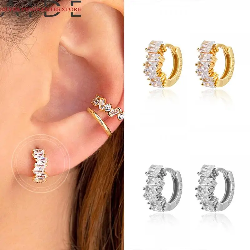 925 стерлингового серебра женские серьги-кольца с крошечные багет C...