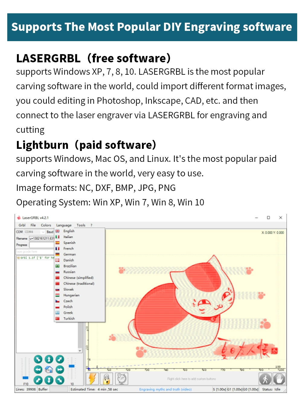 -- Лазерная GRBL поддерживает множество языков, без примечаний мы отправим GRBL1.1 для контроллера, если вам нужен Benbox, пожалуйста, свяжитесь с нами!