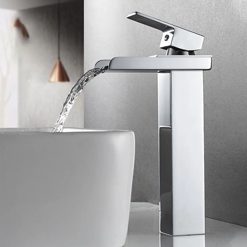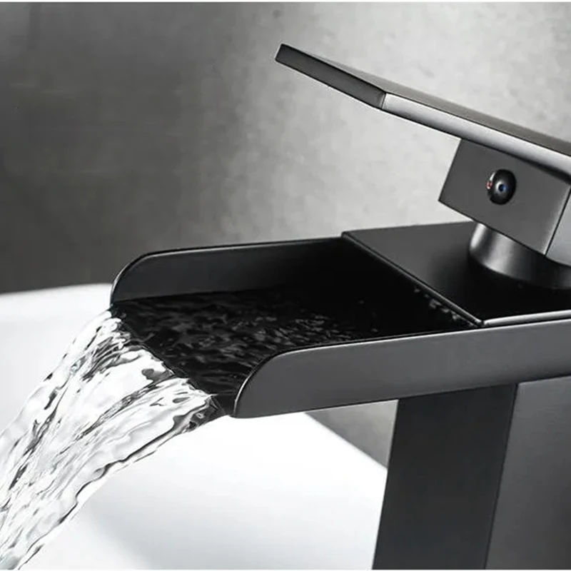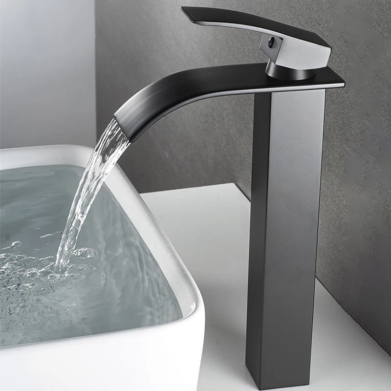 Квадратный хромированный и черный смеситель водопад для раковины Смеситель для ванной кран с широким носиком Смеситель для раковины кран для горячей и холодной воды