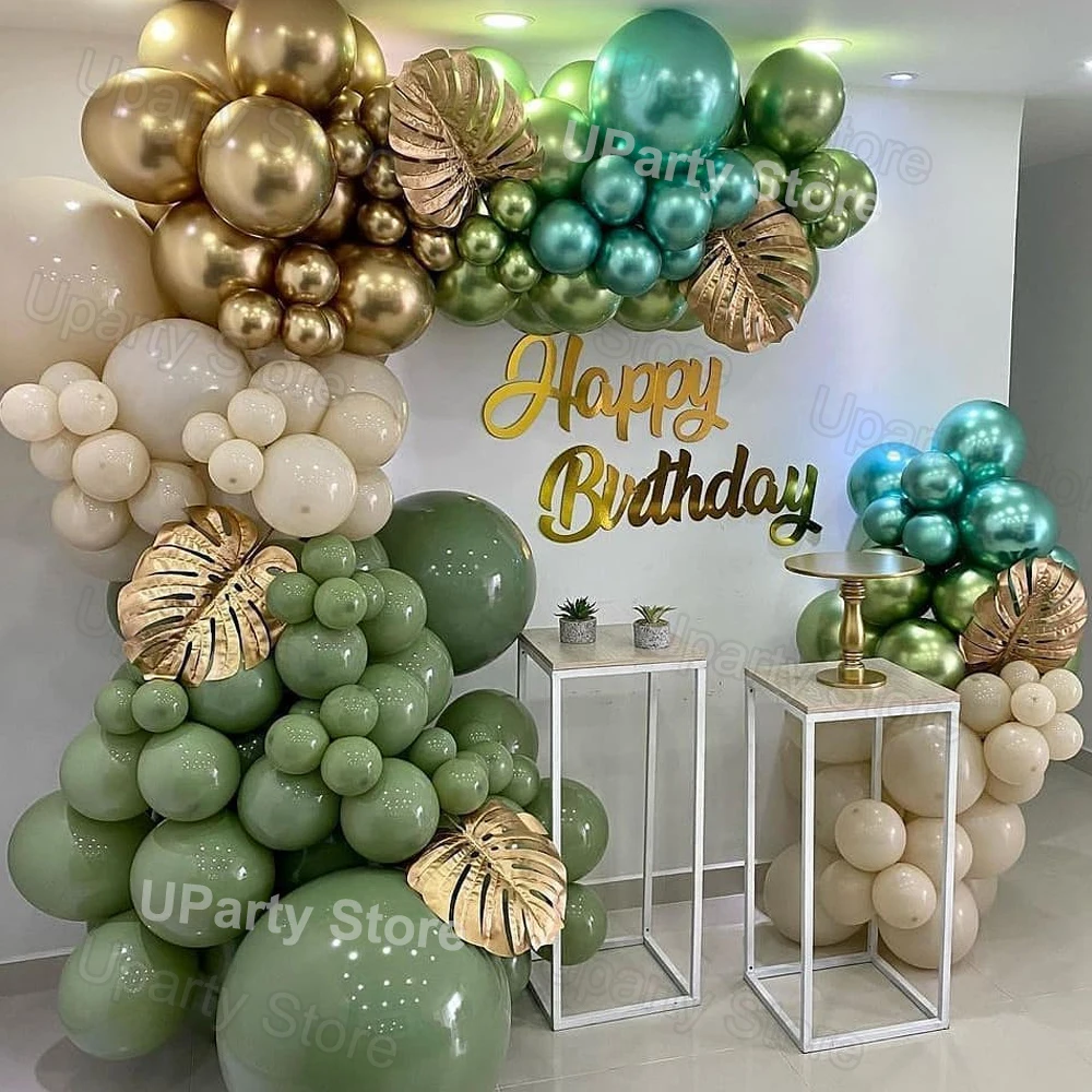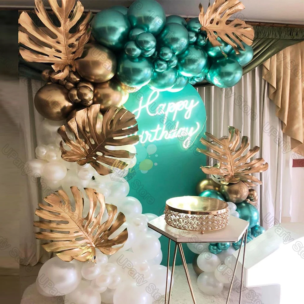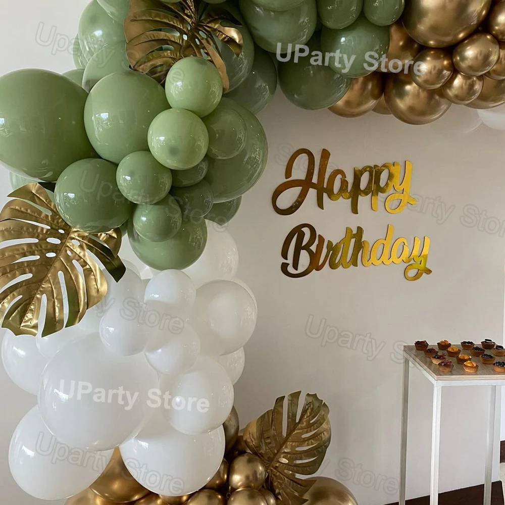 Воздушные шары с зелеными листьями авокадо, украшение на день рождения, гирлянда с белыми и зелеными хром золотыми листьями, для свадьбы, детской вечеринки