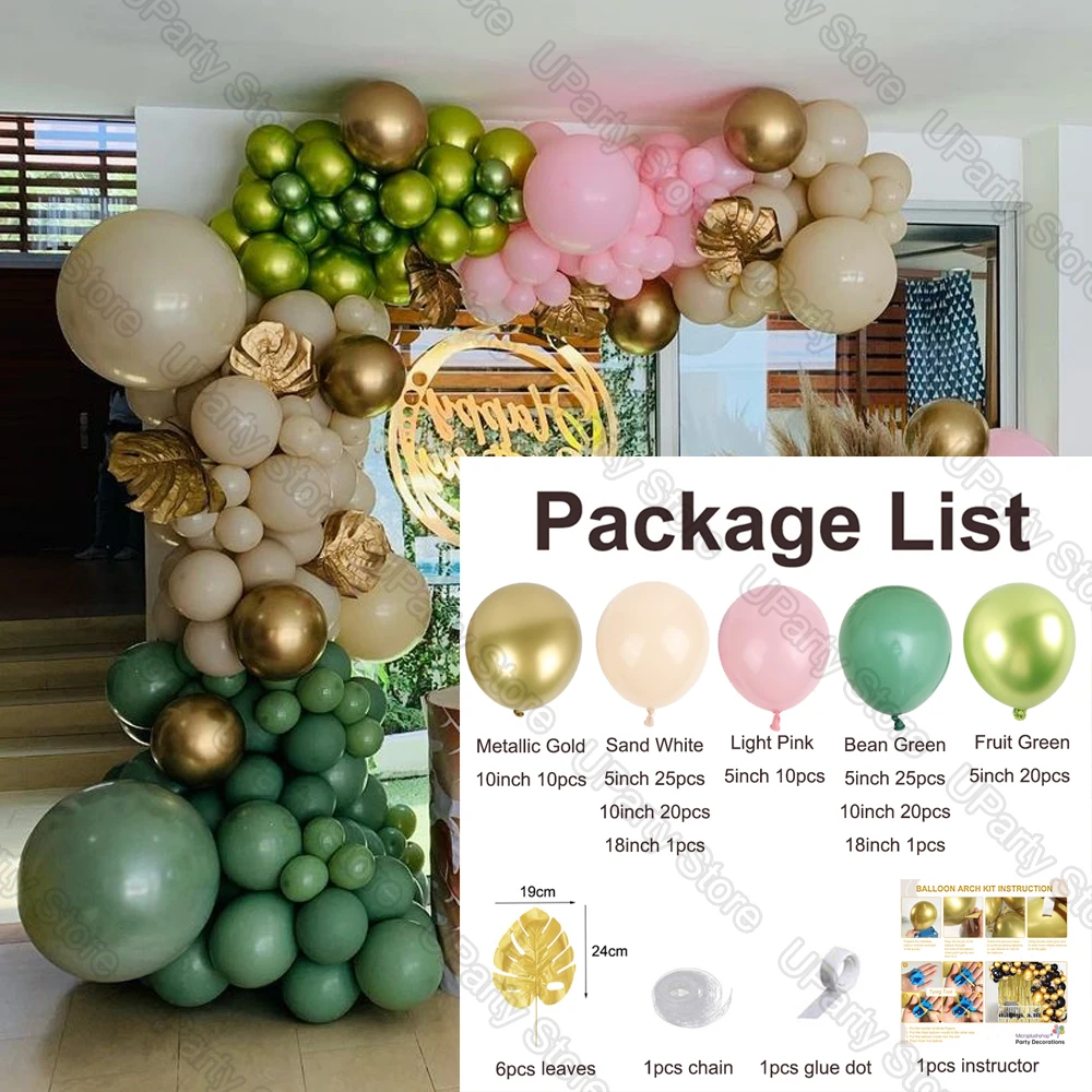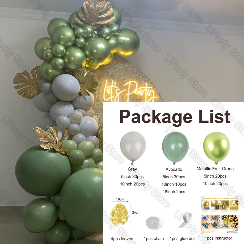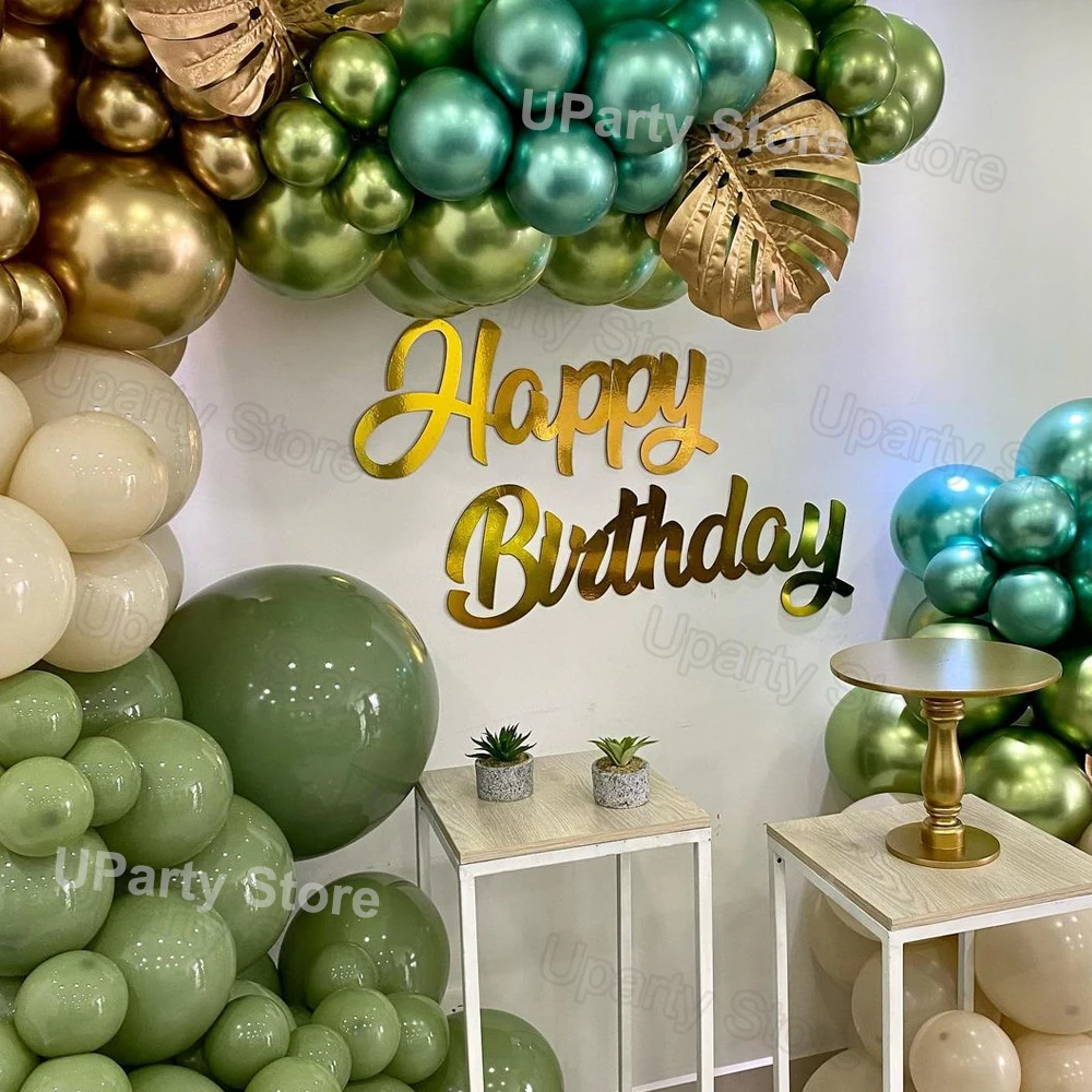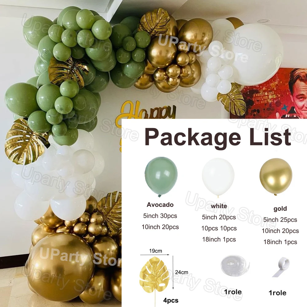 Воздушные шары с зелеными листьями авокадо, украшение на день рождения, гирлянда с белыми и зелеными хром золотыми листьями, для свадьбы, детской вечеринки