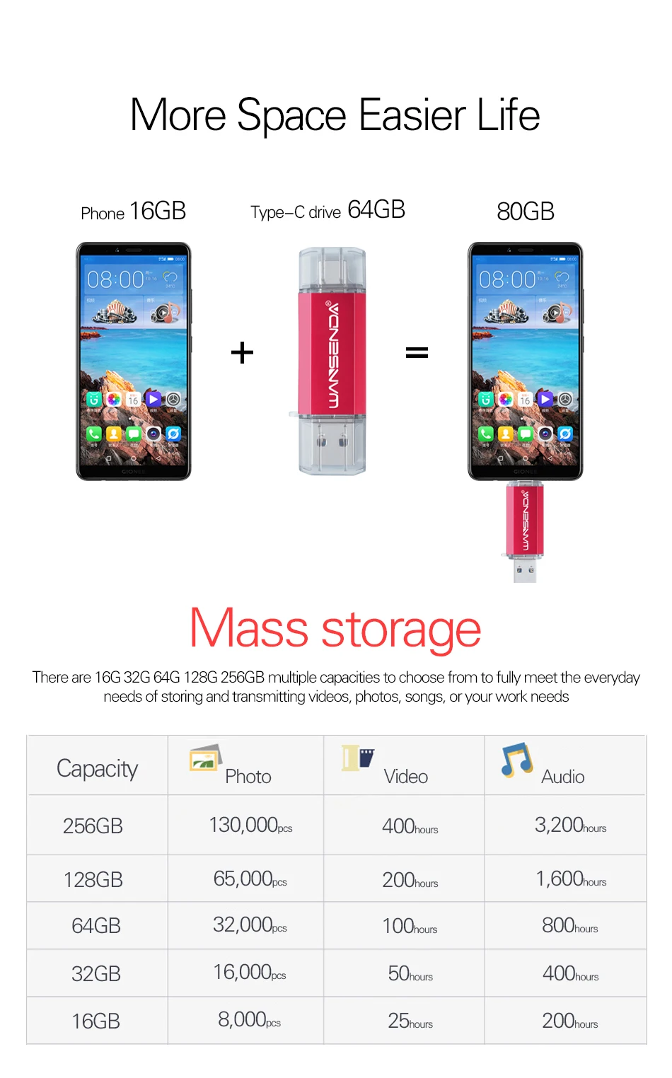 WANSENDA OTG Usb 3,0 USB-флеш-накопитель, 32 ГБ, 64 ГБ, 128 ГБ, 256...