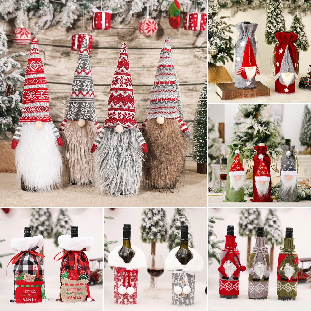 Рождественские украшения для дома, крышка для винной бутылки, топпе...