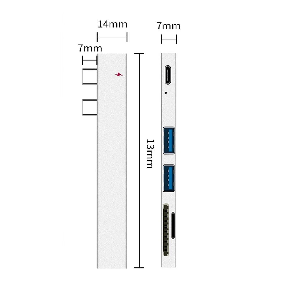 USB Hub with SD/TF Card Reader Aluminum Alloy Multi Type C Hub Splitter Cable Adapter for Apple MacBook Pro Laptop PC Extender
