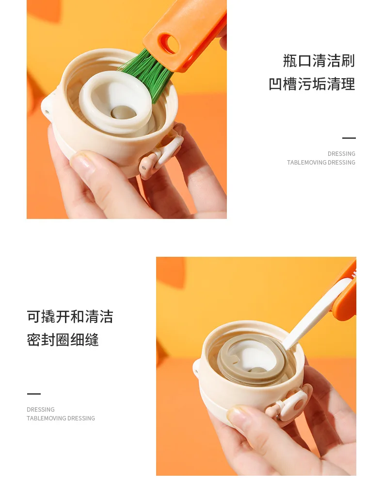 Описание1. Три в одном щетка для очистки: угловая щетка, щётка для зазора, средство для удаления крючка. Можно чистить колпачки для бутылок, детские бутылочки, чашки и другие зазоры. Универсальное использование.2. Современный и простой стиль, можно сложить, не повреждая руки, легко хранить и чувствовать себя комфортно.3. Скошенная угловая щетка может легко очистить сложные части структуры, которые губка не может достичь.4. Спиральная щётка, с использованием нержавеющей стали 304, высокая плотность, процесс посадки волос, имеет сильную моющую способность, может проникать в узкий паз или внутреннюю стенку крышки чашки и удалять трудную грязь5. Устройство для удаления крючков легко удаляет прокладку, которую нелегко снять.