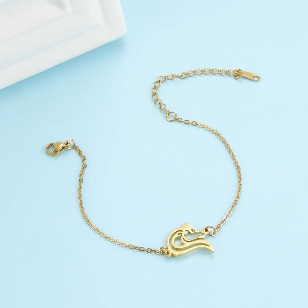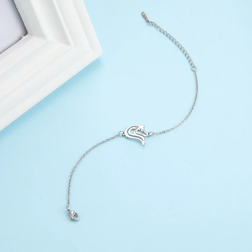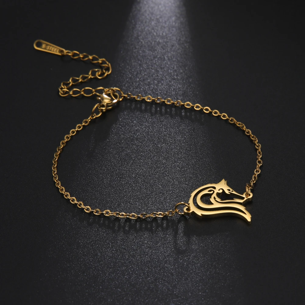 Браслет из нержавеющей стали для женщин, лиса, волк, милые талисман...