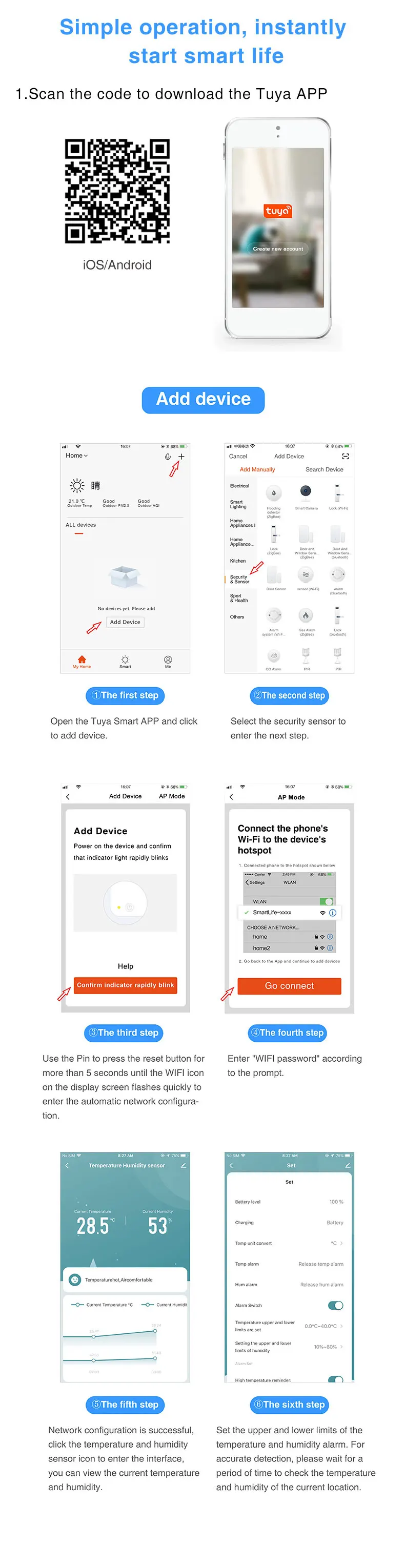 Умный датчик температуры и влажности Tuya Wifi, подключение к точка...