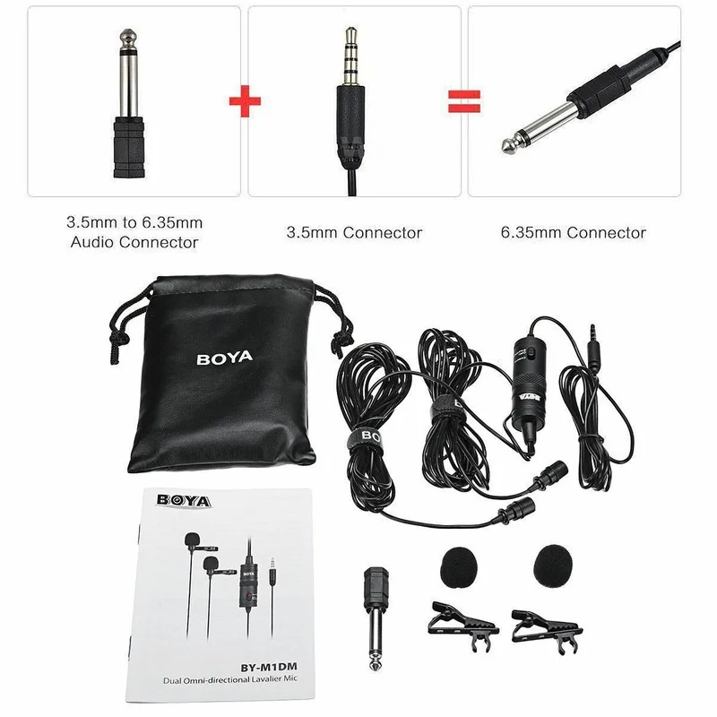 BOYA BY-M1DM-это всенаправленный двойной микрофон lavalier, предназначенный для смартфонов, DSLR, видеокамер, аудиомагнитол и т. д., он идеально подходит для использования в видео.