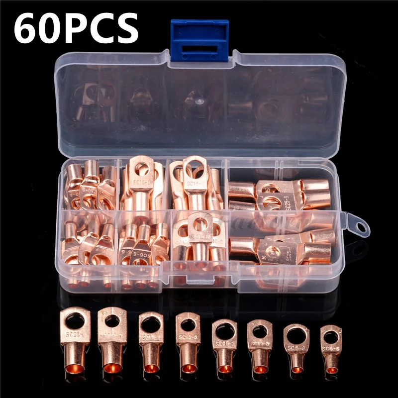 60 шт. планшетов, SC25-6, набор медных наконечников для кабеля с отверстием для болта, луженые кабельные наконечники, клеммы для аккумулятора, медные Проводные разъемы