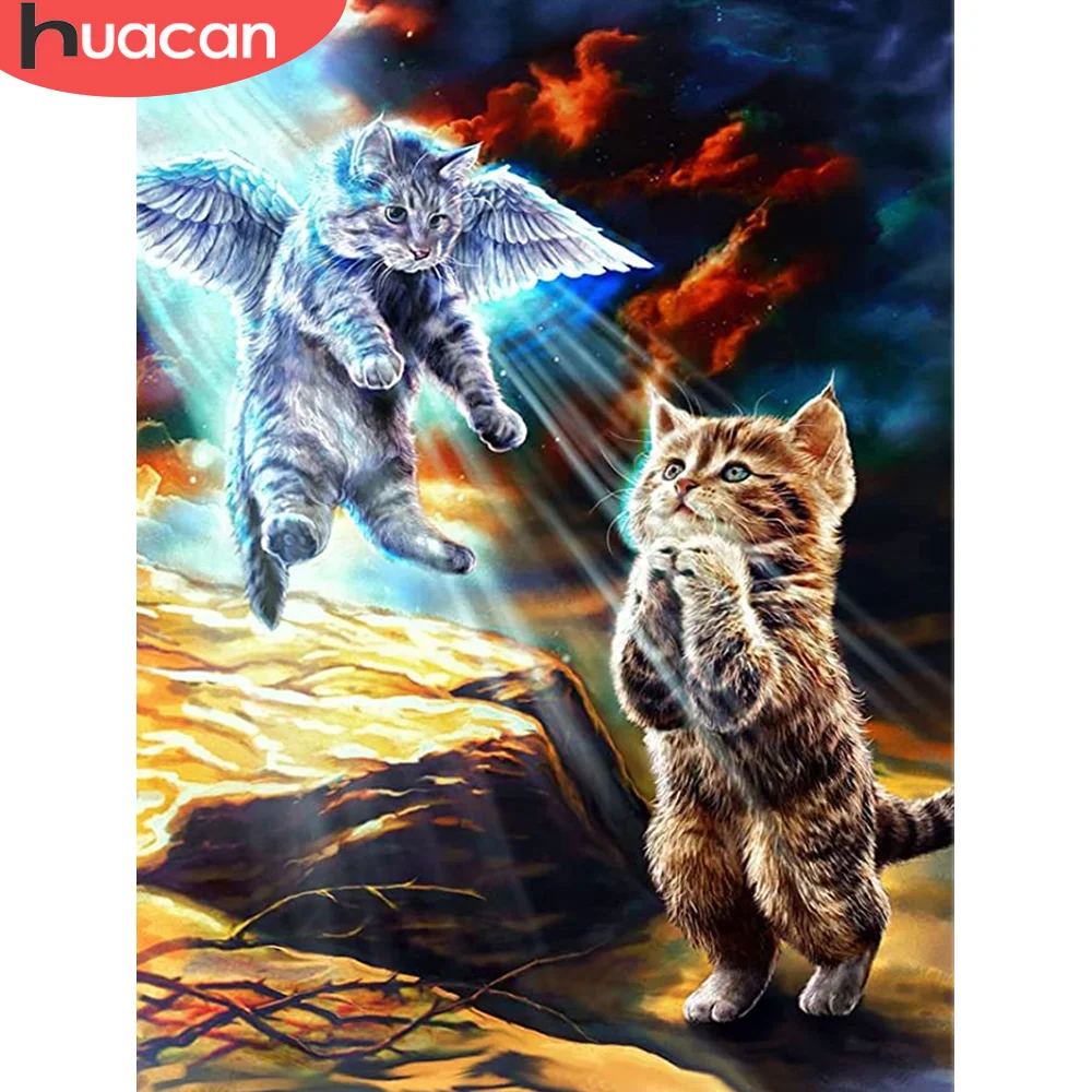HUACAN 5D алмазная картина кошка полный квадрат Новое поступление Алмазная вышивка животное мозаика ангел, Рукоделие украшение для дома