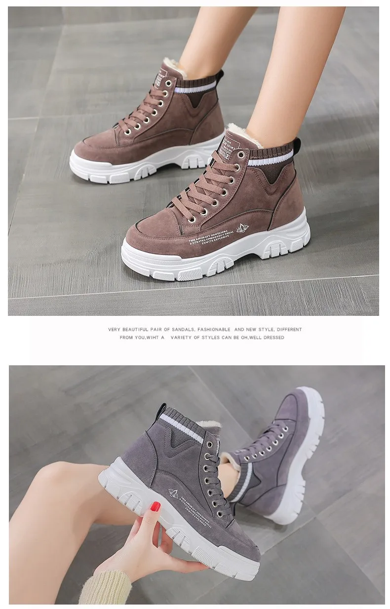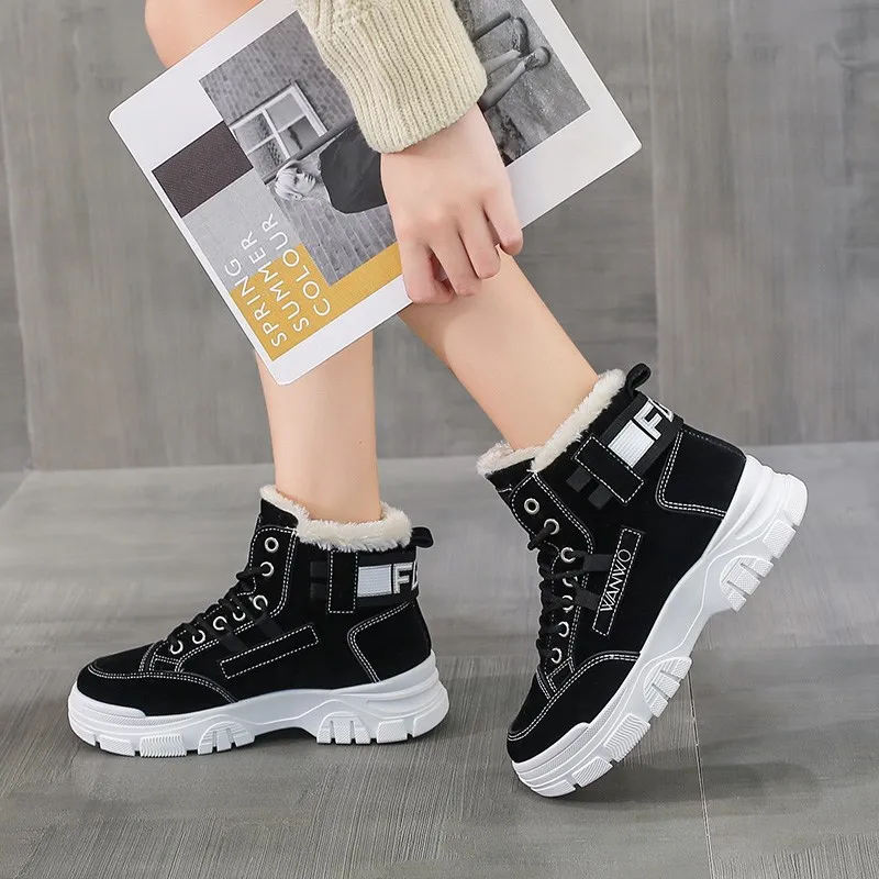 Женская Повседневная обувь, короткие ботинки, модные кроссовки, зимние ботинки на платформе, зимняя обувь на массивной подошве, женская обувь, плюшевые женские ботинки, новинка 2021