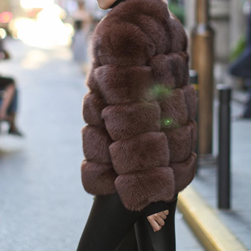 Женское зимнее пальто из искусственного лисьего меха, с длинным рукавом