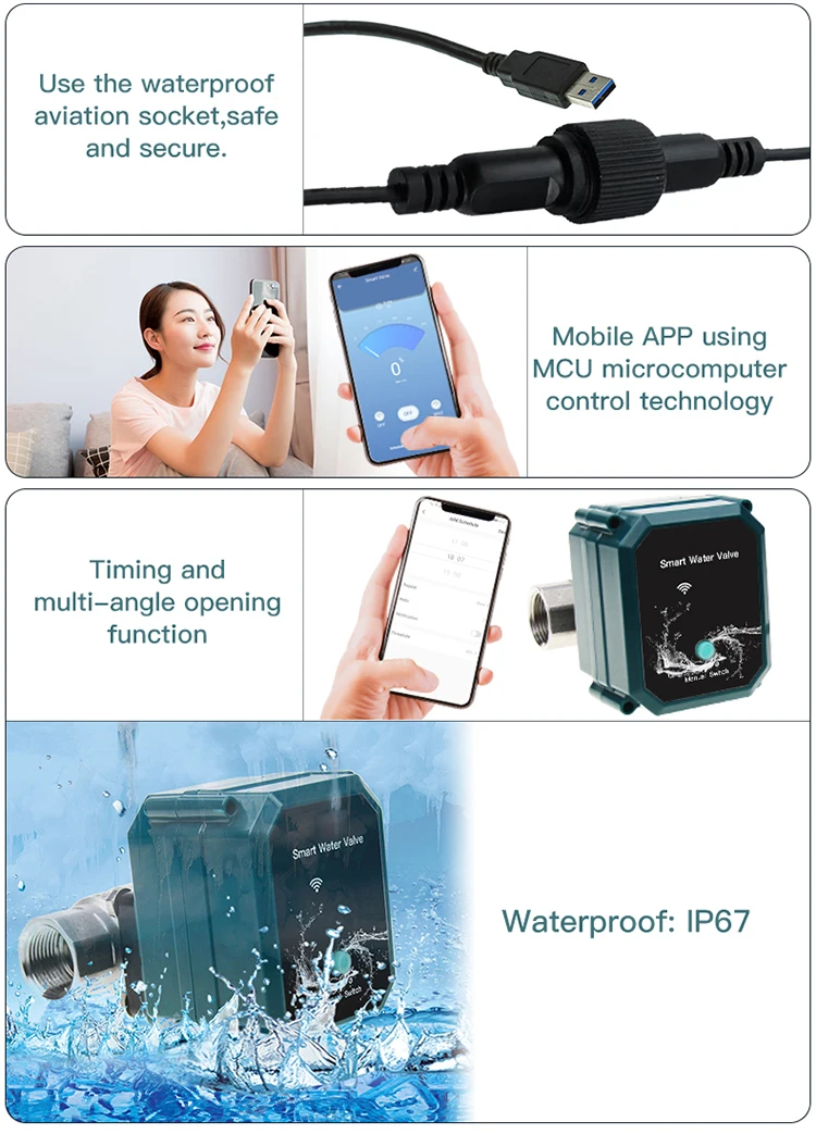 Умный водяной клапан WiFi может автоматически управляться в соответствии с вашими личными предпочтениями. Вы можете дистанционно управлять клапаном через приложение для смартфона в любое время и в любом месте, время и Регулировка потока, обеспечивая новый интеллектуальный сервис полива для ваших цветов и газонов, И делает вашу жизнь более комфортной и безопасной.Основные характеристики:1. Простота установки-Простота установки самостоятельно-никаких специальных инструментов или опыта не требуется. Выберите местоположение с wifi сигналом на открытом воздухе, подключите существующие провода к нашему интеллектуальному контроллеру, чтобы завершить настройку в приложении.2.WiFi умный водяной клапан-подключается к WiFi, контролирует и контролирует Ваш мобильный телефон в любом месте. Работа с Amazon Alexa и Google Assistant для ручного голосового управления.3. Многоуровневое использование-его можно использовать в садах, лужайках, теплицах и фермах.4. Откройте/закройте водяной клапан от 0% до 100% угла через приложение телефона5. Функция синхронизации и обратного отсчета.6. Функция защиты от сбоя питания.7. Модуляция Wi-Fi, поддержка дистанционного управления WIFI, Бесплатный комплект с приложением iOS/Android.8. Поддержка Tuya smart, smart life, alexa и google home.