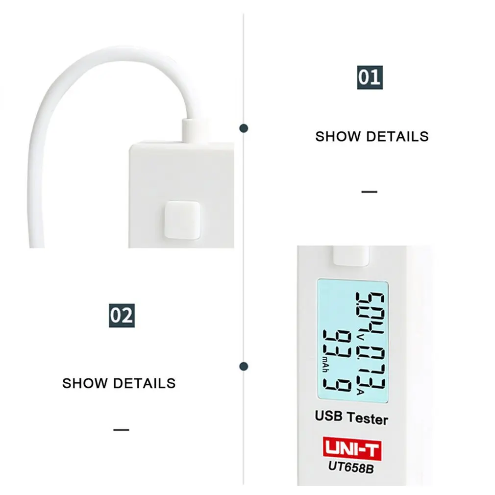 USB-тестер UNI T UT658B, USB-тестер для зарядки телефона, компьютера, монитор напряжения и энергии, ЖК-дисплей, подсветка