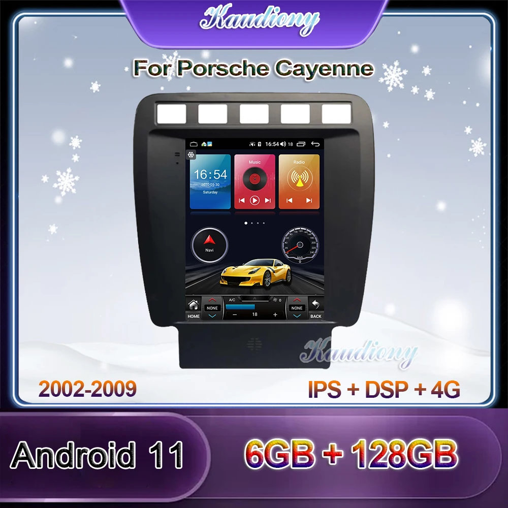 Автомобильный радиоприемник Kaudiony, автомобильный мультимедийный плеер 10,4 дюйма в стиле Tesla, Android 11, для Porsche Cayenne, DVD, GPS-навигация, 4G, 2002 - 2009