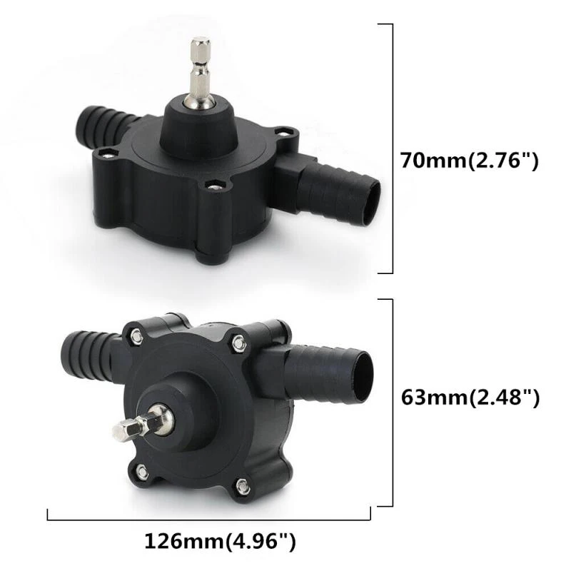 Особенности:1. Тонкая работа, пластик, прочный и имеет длительный срок службы.2. Мини-размер, светильник вес, легко носить с собой.3. Большой поток, стабильная производительность и высокая эффективность, простота установки.4. Скорость откачки быстрая, может насосы 30-40 л воды в минуту (зависит от оборотов в минуту сверла).5. Установите все буровые патроны, вы можете использовать электрическую дрель, чтобы получить насосы, легко и удобно в использовании. Батареи не нужны.Примечание:1. Фактический цвет может быть s светильник, который сильно отличается от изображения из-за различных эффектов монитора и светильник. Возможны отклонения на 1-3 см вследствие измерений вручную.2. Только насосы, электрическая дрель не входит в комплект. Спецификация:Материал: пластикЦвет: черныйХвостовик насосов: шестигранный хвостовикДиаметр хвостовика: 1/4"Внутренний диаметр входа/выхода: 16 ммНаружный диаметр входа/выхода: 19 ммРасход:20-30л/мин (120 Вт-350 Вт 1500-2500 об/мин)30-40л/мин (350 Вт-650 Вт 2500-3500 об/мин)Размеры: 126*70*63 мм/4,96*2,76*2,48 дюймов
