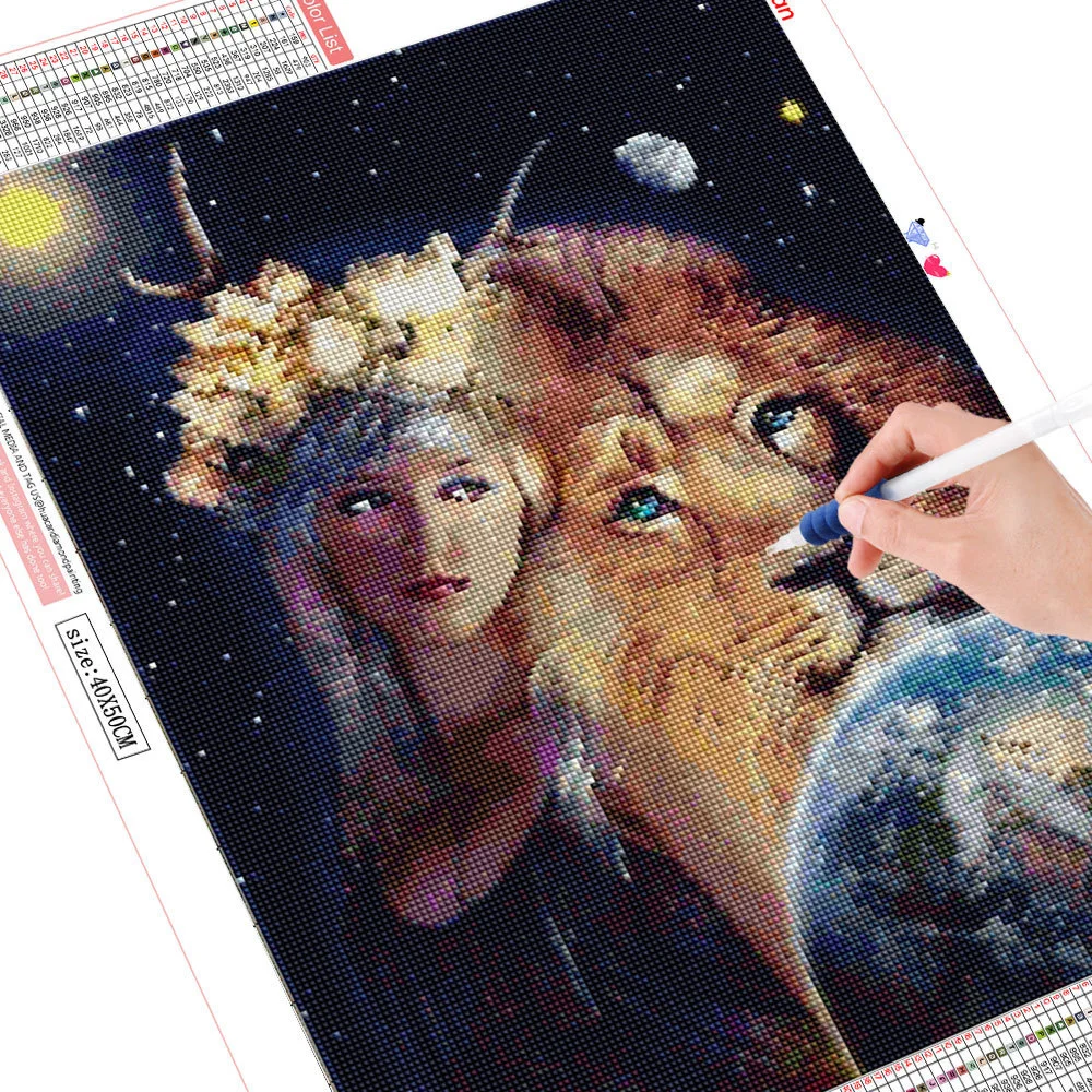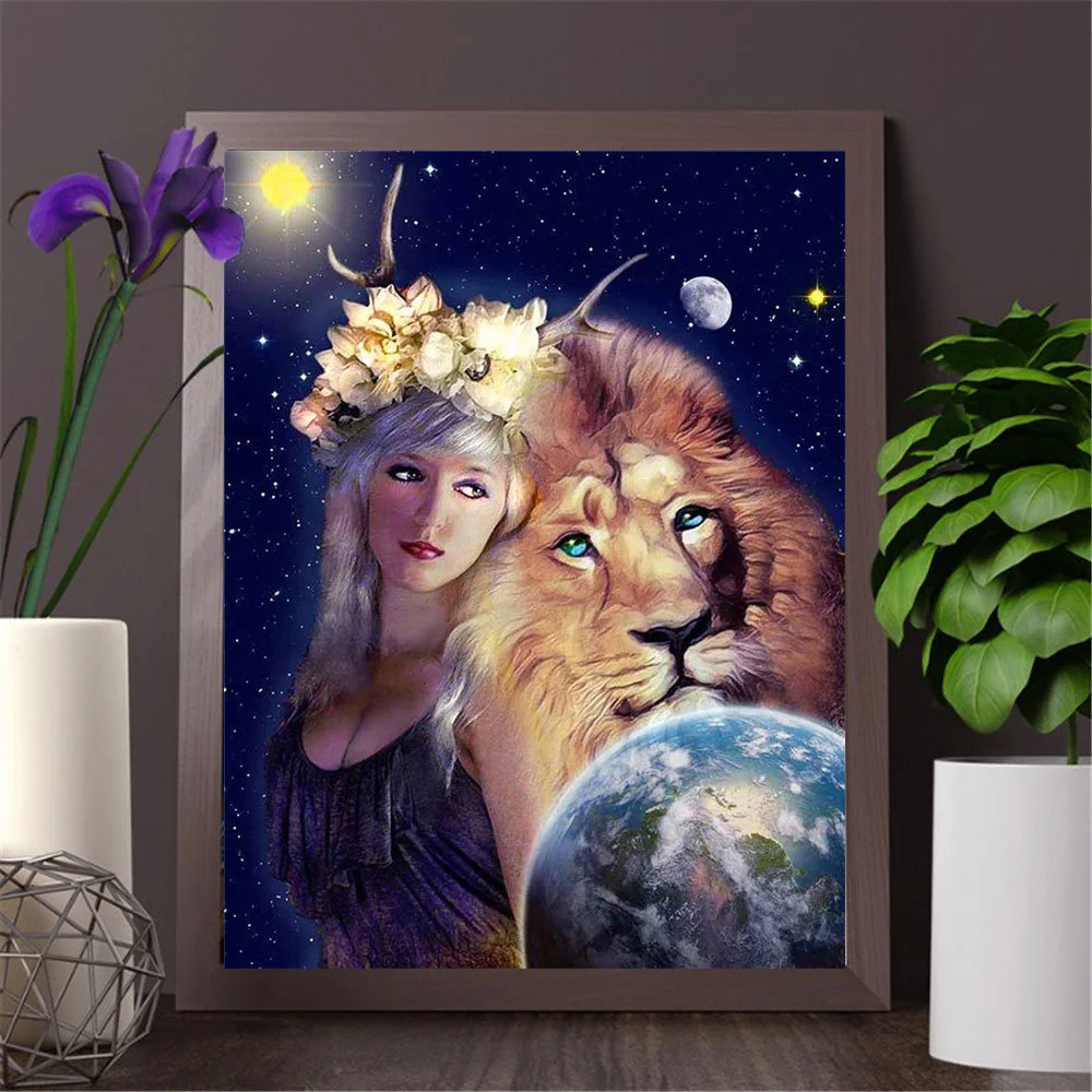 HUACAN полная дрель квадратная Алмазная картина льва Алмазная вышивка, девушка вышивка крестом Алмазная мозаичный портрет рукоделие