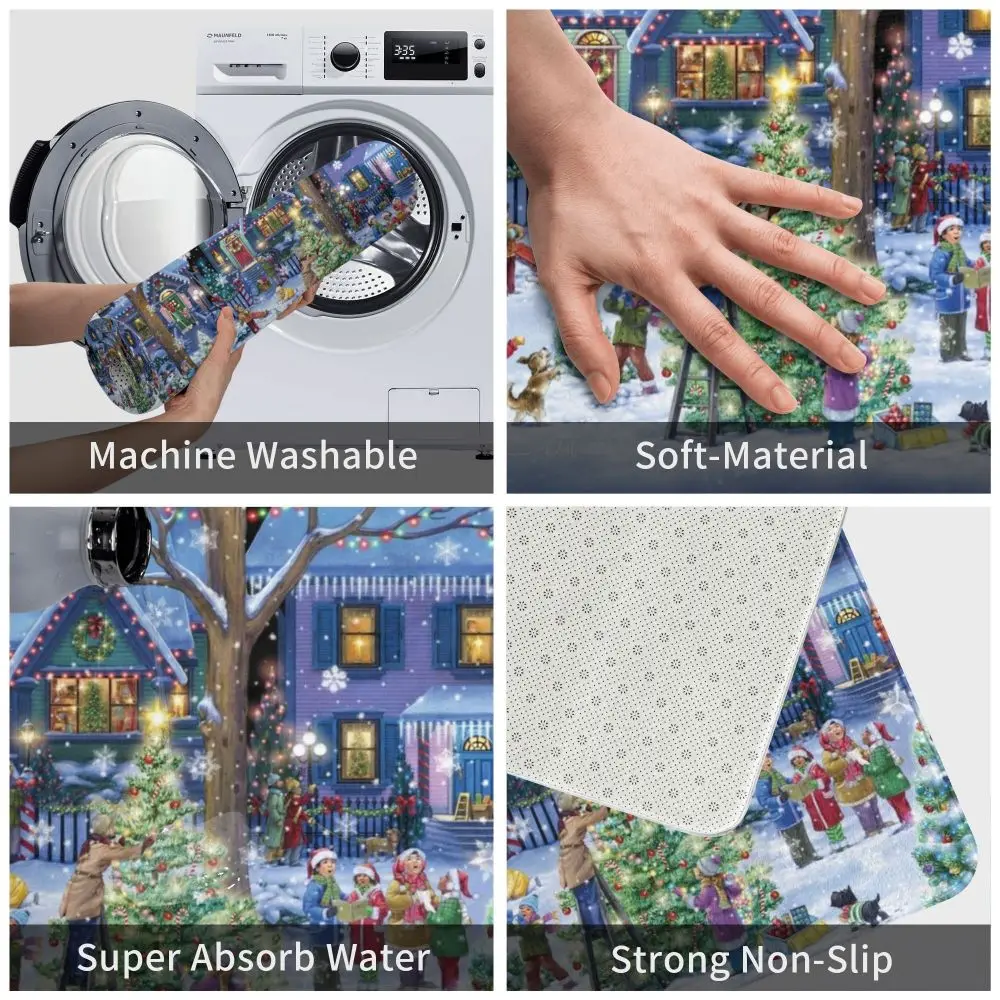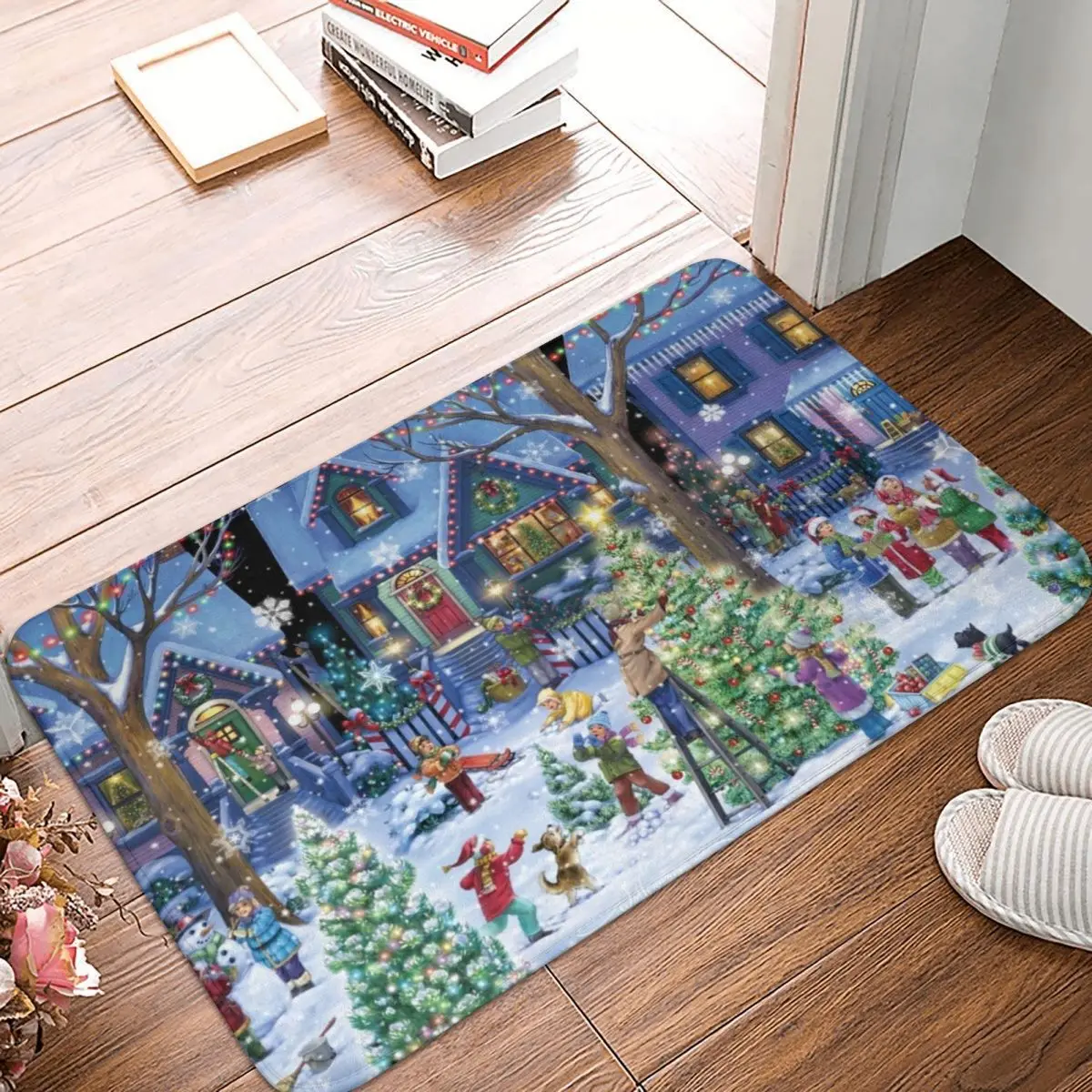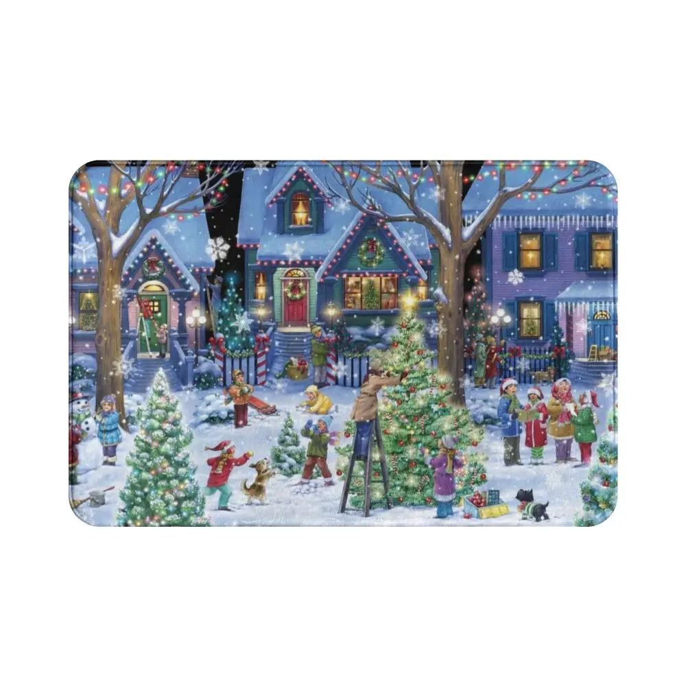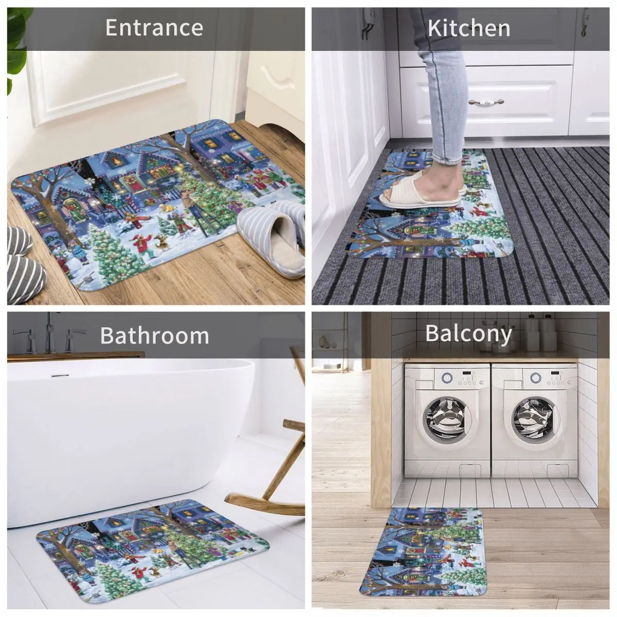 Декоративный Рождественский коврик из полиэстера, коврик для ног, Противоскользящий коврик для кухни, спальни, балкона, мультяшный