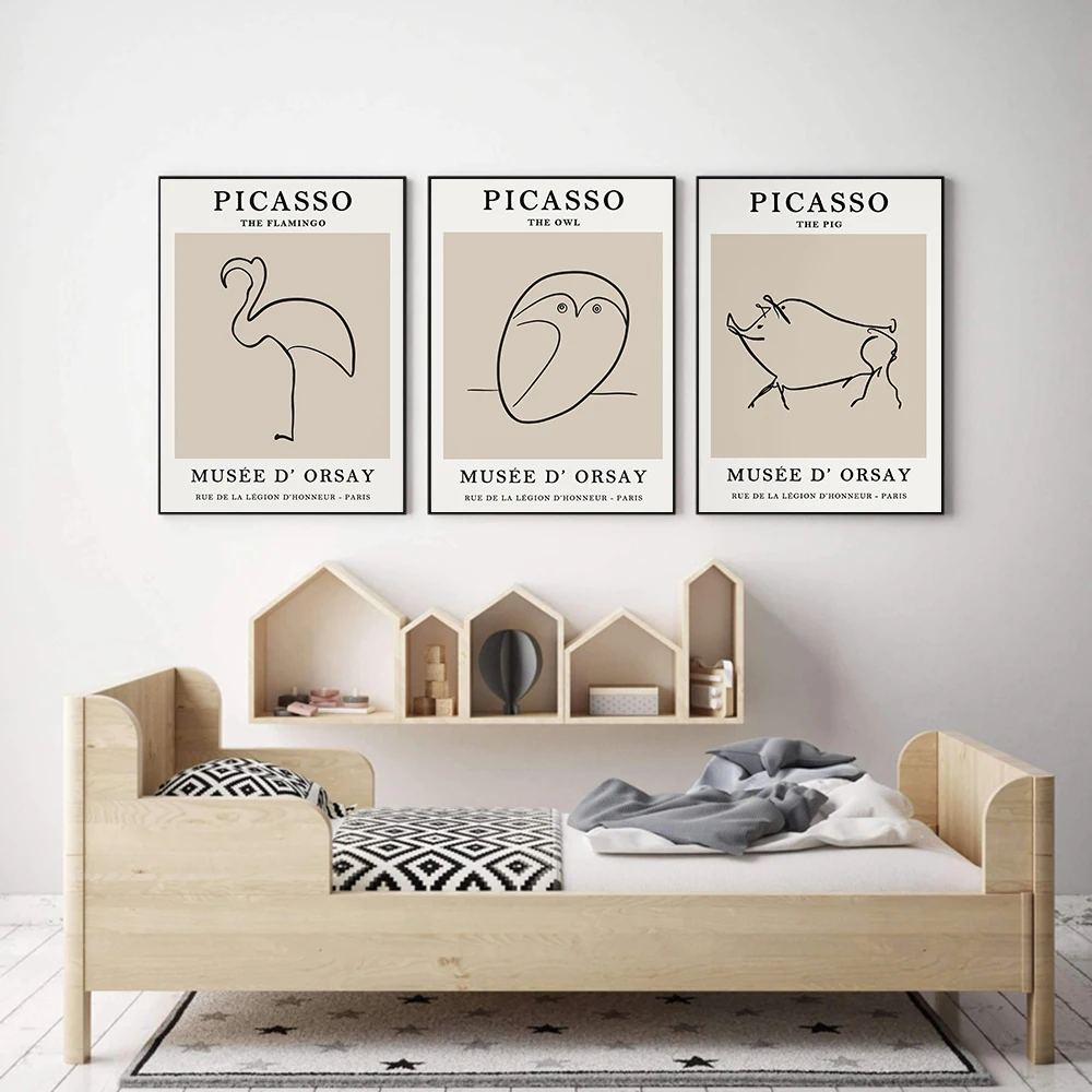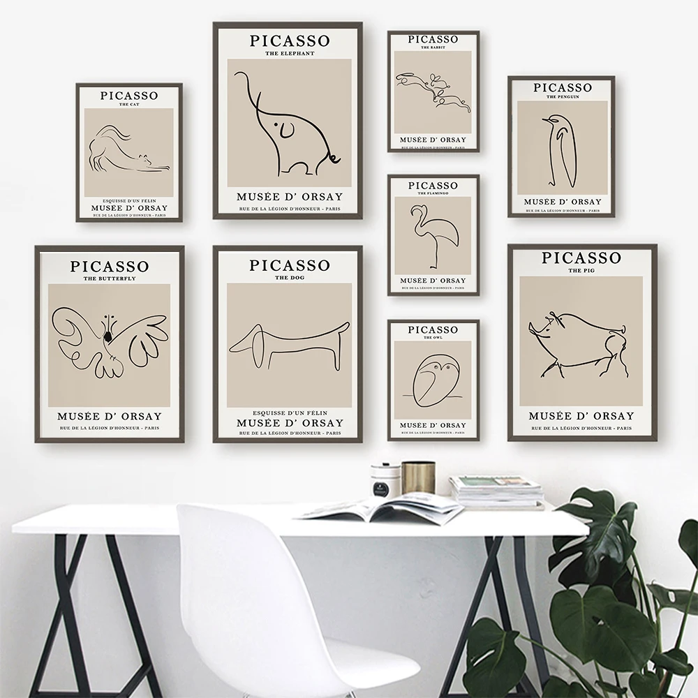 Минималистичный плакат Пикассо, животное, плакат, холст, живопись, линия, рисование, Художественная печать, винтажная Настенная картина для гостиной, домашний декор