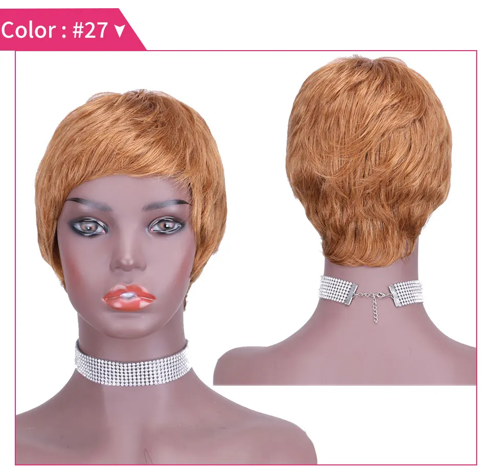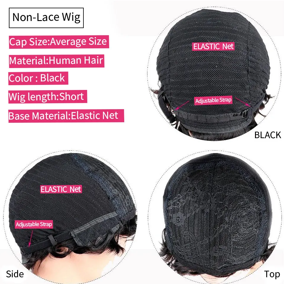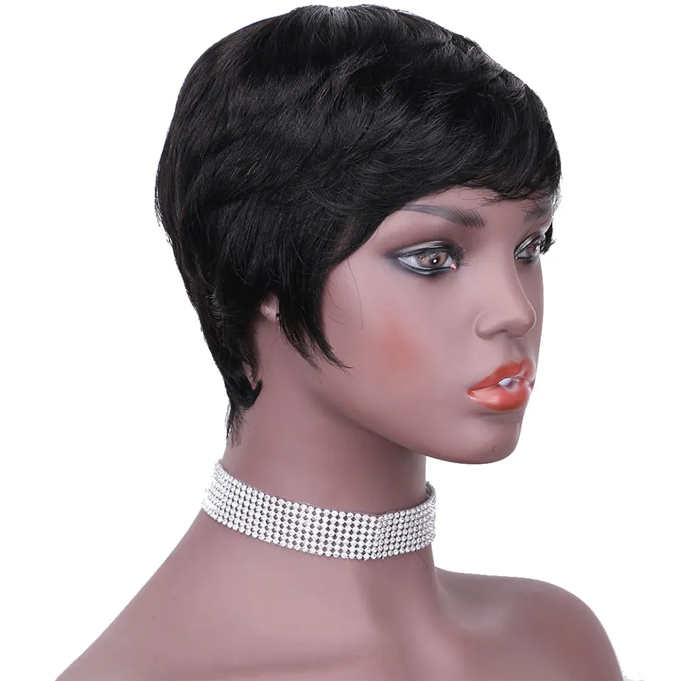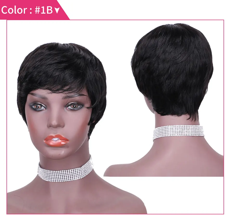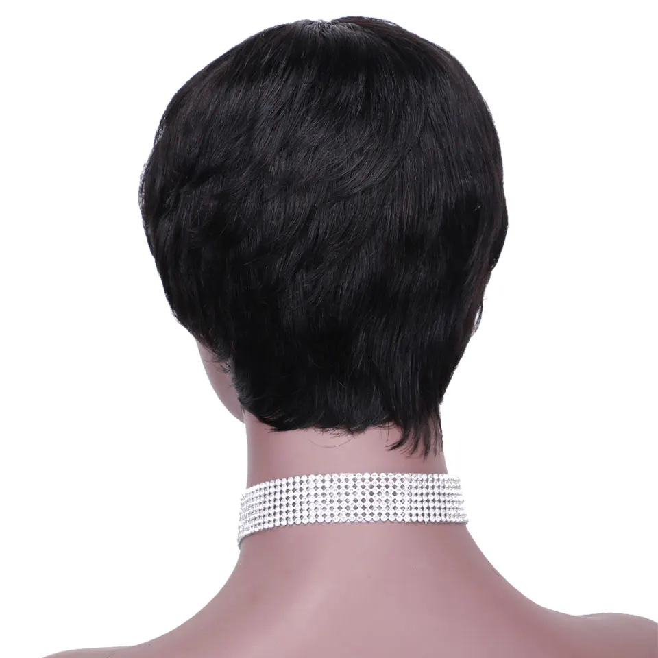 Короткий парик фея, прямые бразильские волосы Remy, парики для чернокожих женщин, без клея, полностью машинное изготовление, естественный спин головы