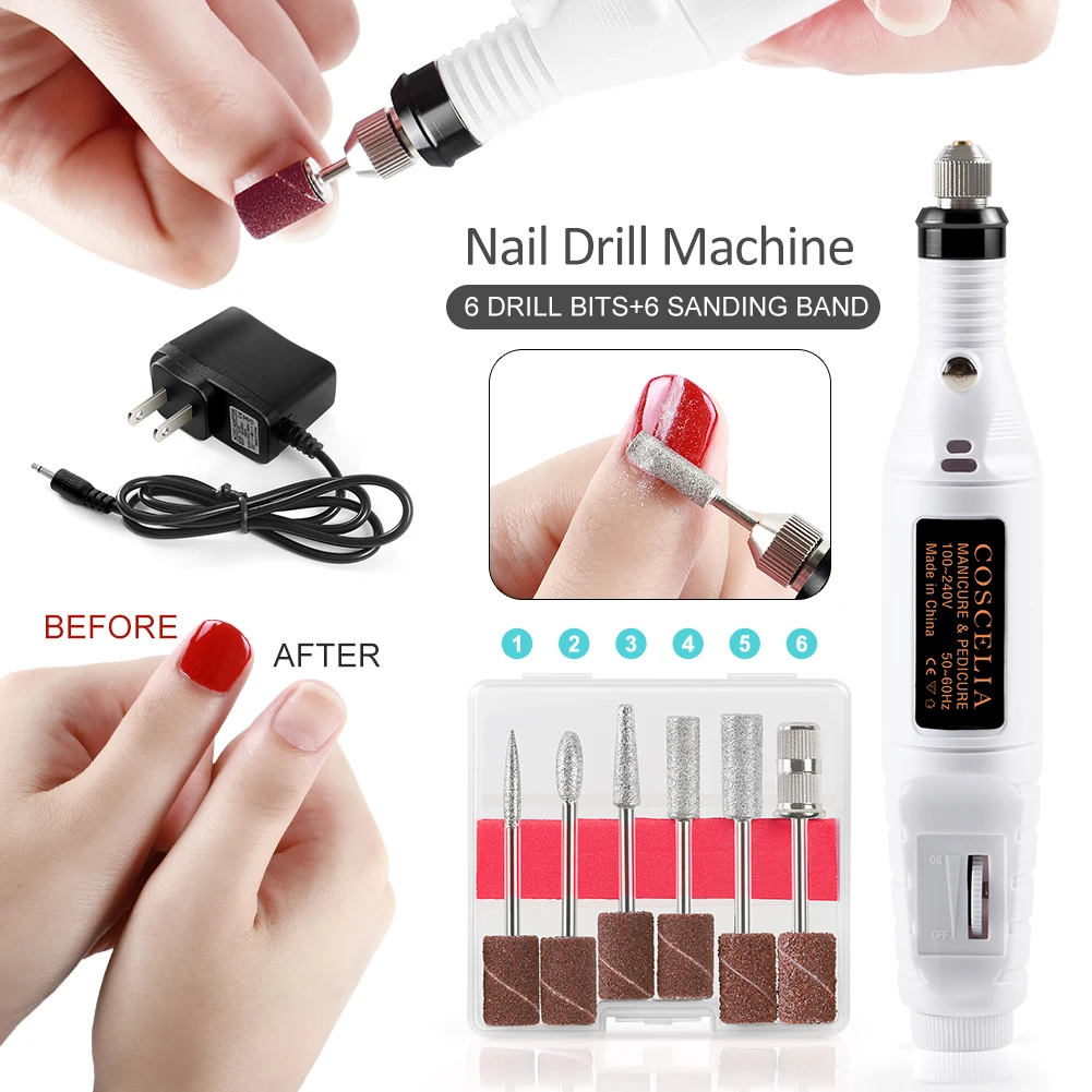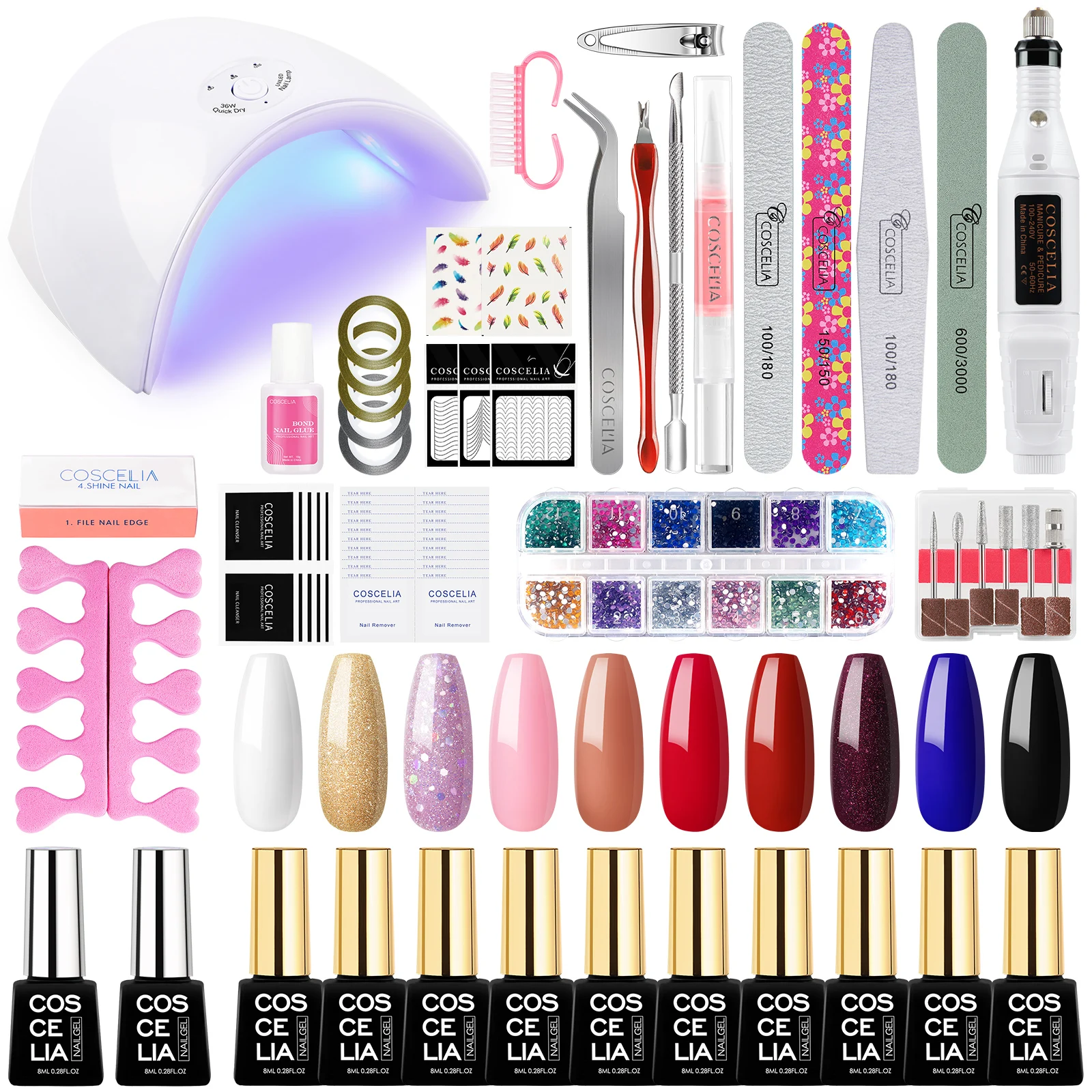 Набор для ногтей COSCELIA, УФ-светодиодсветодиодный лампа с машинкой для маникюра, верхнее Базовое покрытие, удаление замачиванием, набор гель-лаков, блеск, полный инструмент для дизайна ногтей
