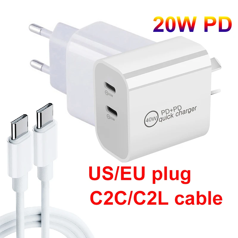 Зарядное устройство PD с двумя портами USB Type-C, 20 Вт, QC 3,0