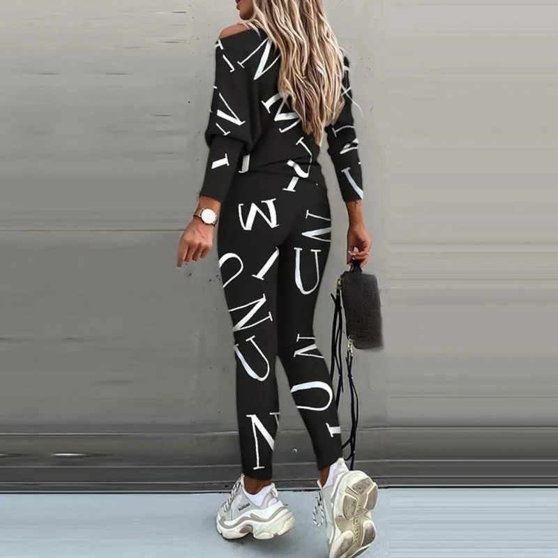 Новинка 2022, стильная модная женская одежда с принтом, удобный спортивный костюм, блузка и штаны, спортивный костюм для спорта из двух предметов с карманами