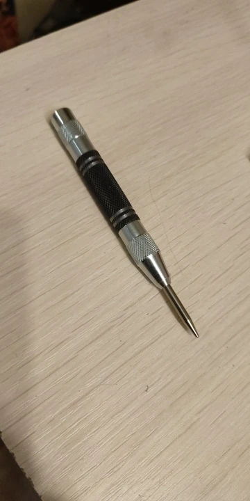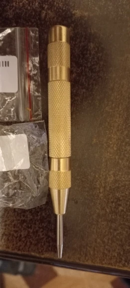 большой автоматический керн, жало в комплекте одно, немного заедает, т.к. приёмное отверстие не соосно с бойком, но металл там мягкий, приработается быстро. бьёт достаточно сильно