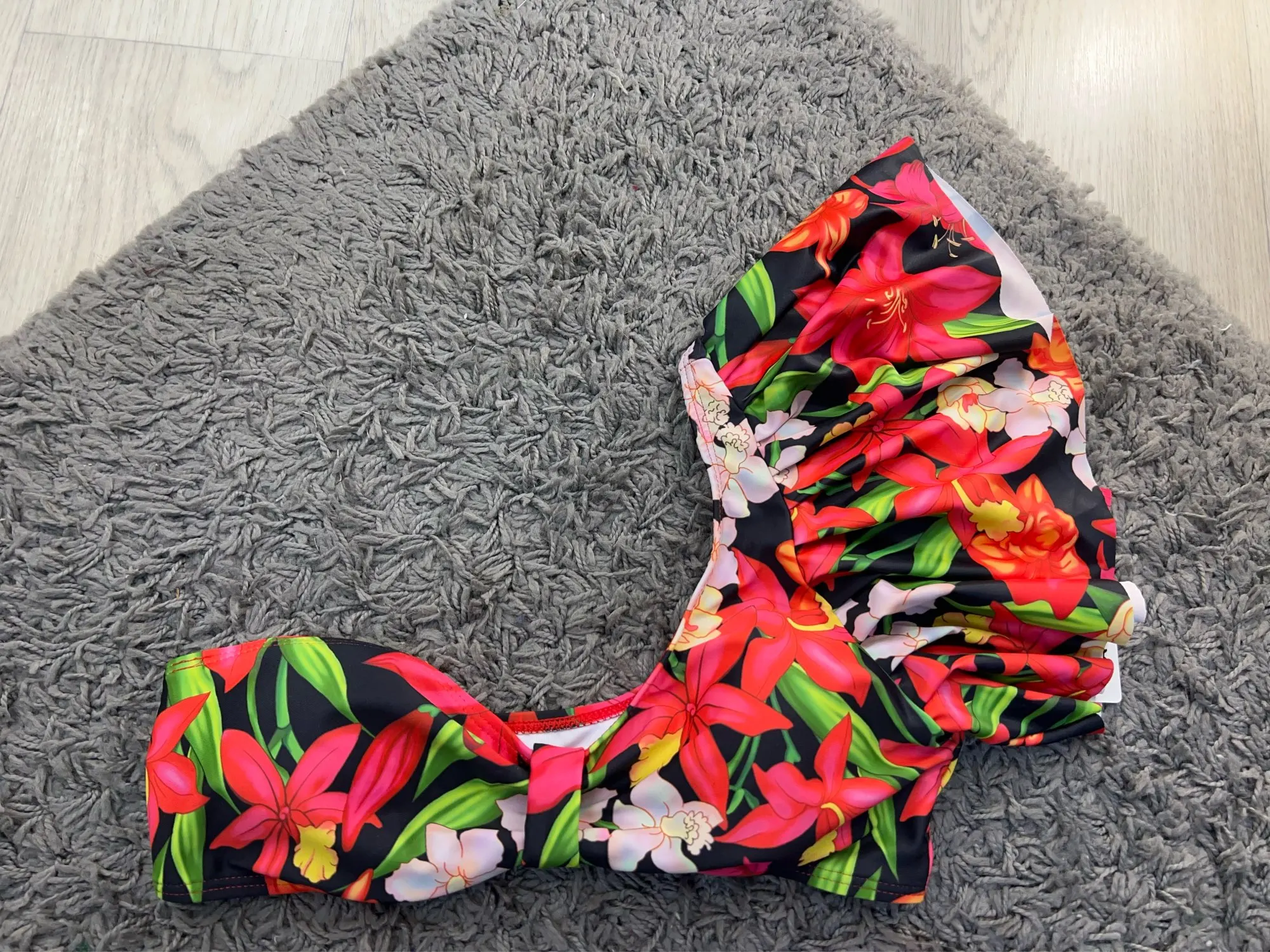 Яркий купальник . Важные моменты: -на мне размер S, мои параметры 90-67-90, сел хорошо -размерный ряд S-L -у продавца одна расцветка -ткань плотная -купальник на подкладе, не просвечивает -верх купальника на отношения плечо, декорировано воланом -бретелька не регулируется -у плавок высокая посадка -качества фабричное -есть съёмные чашки, которые при желании можно убрать -доставка 3 недели -стоимость на момент покупки составила 800 руб. К покупке рекомендую!