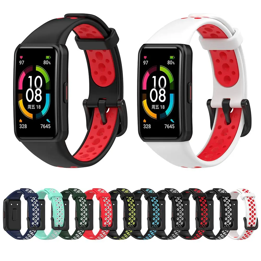 Мягкий двухцветный ремешок с пряжкой для наручных часов, силиконовый сменный ремешок для Huawei Band 6 Honor Band 6