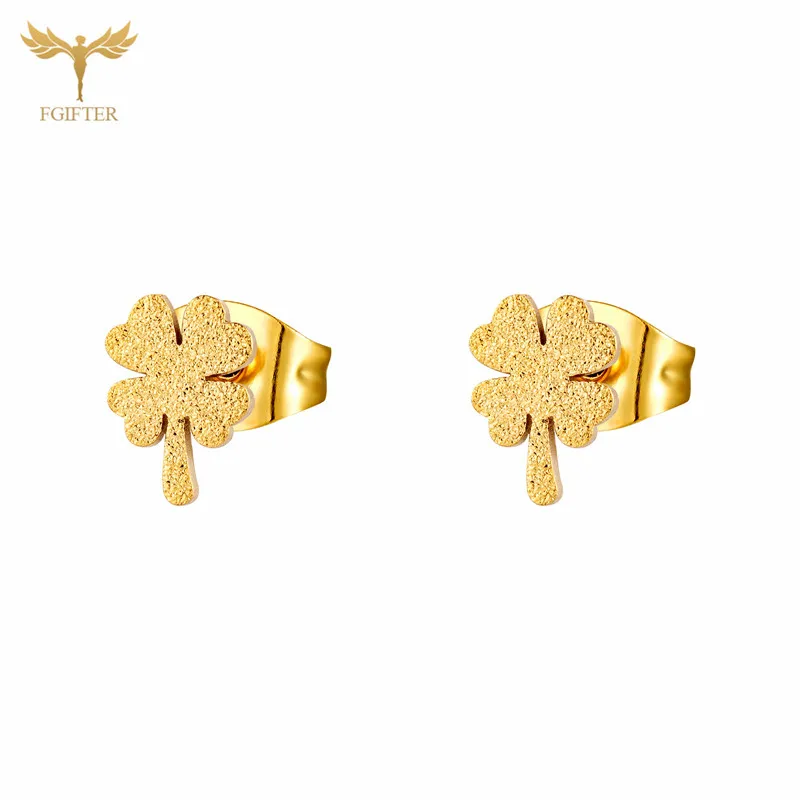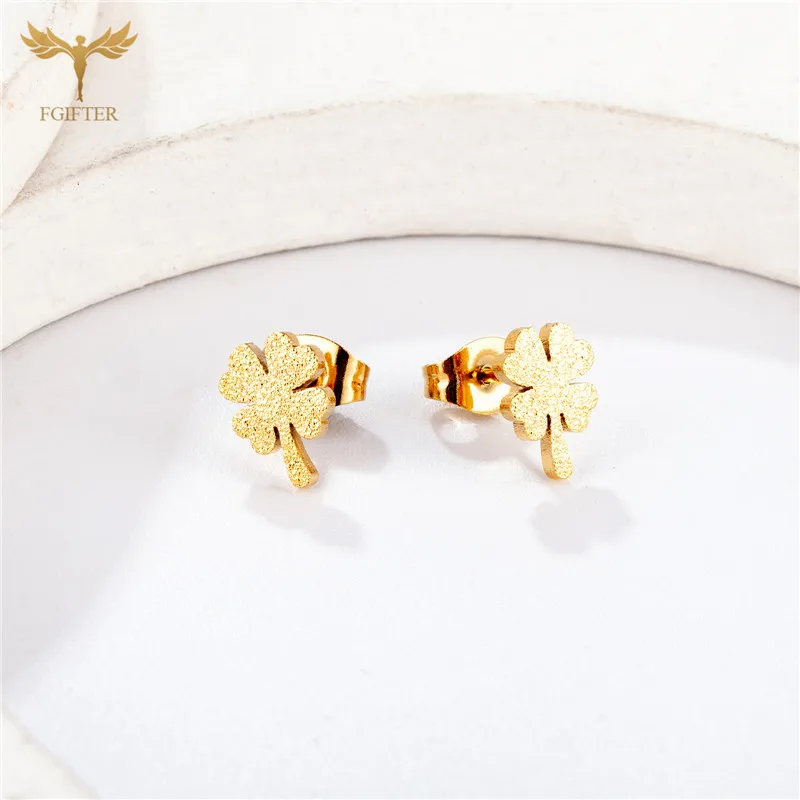 Оптовая продажа женских ювелирных изделий, матовые золотые серьги из нержавеющей стали, сердце, четырехлистный клевер, эксклюзивные женские аксессуары