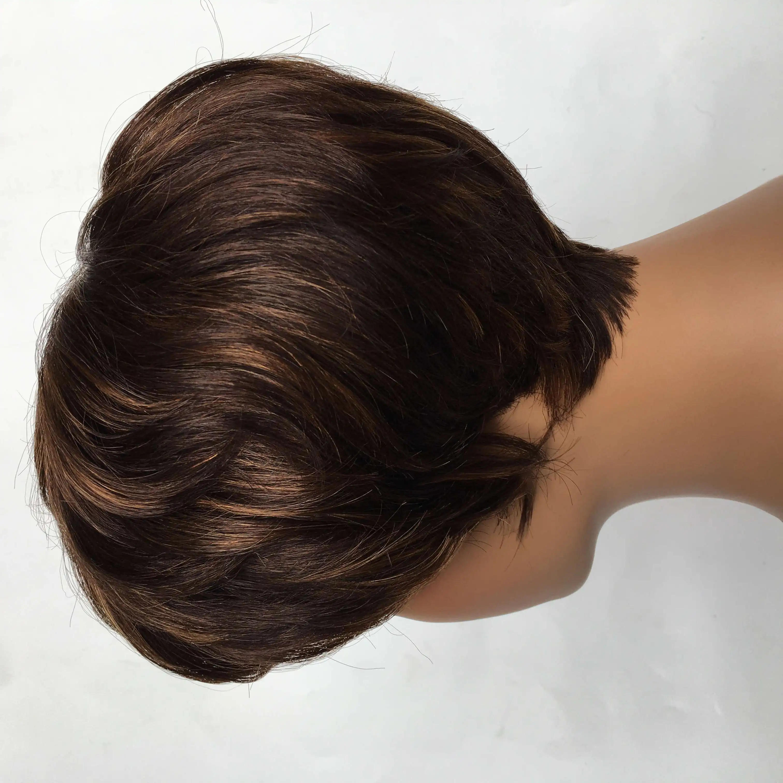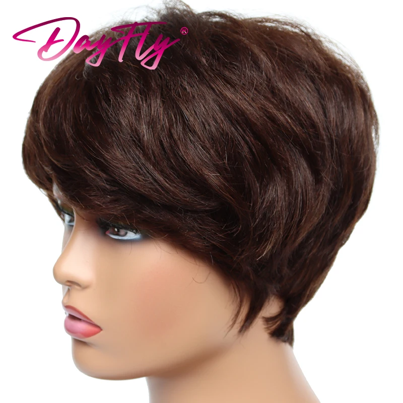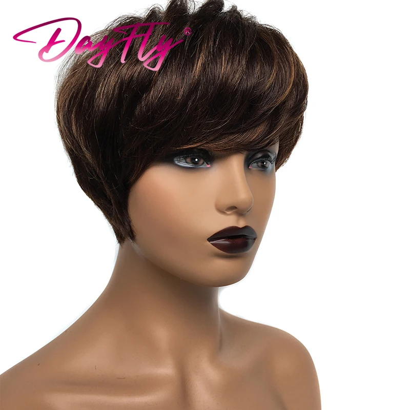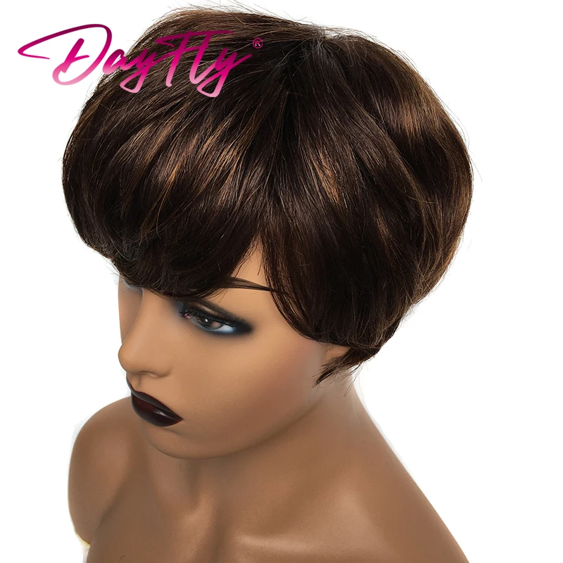 Короткие человеческие волосы, парик с вырезами фея, цветные натуральные волнистые парики с челкой, Короткие парики из человеческих волос с эффектом омбре для женщин, бразильский парик из волос
