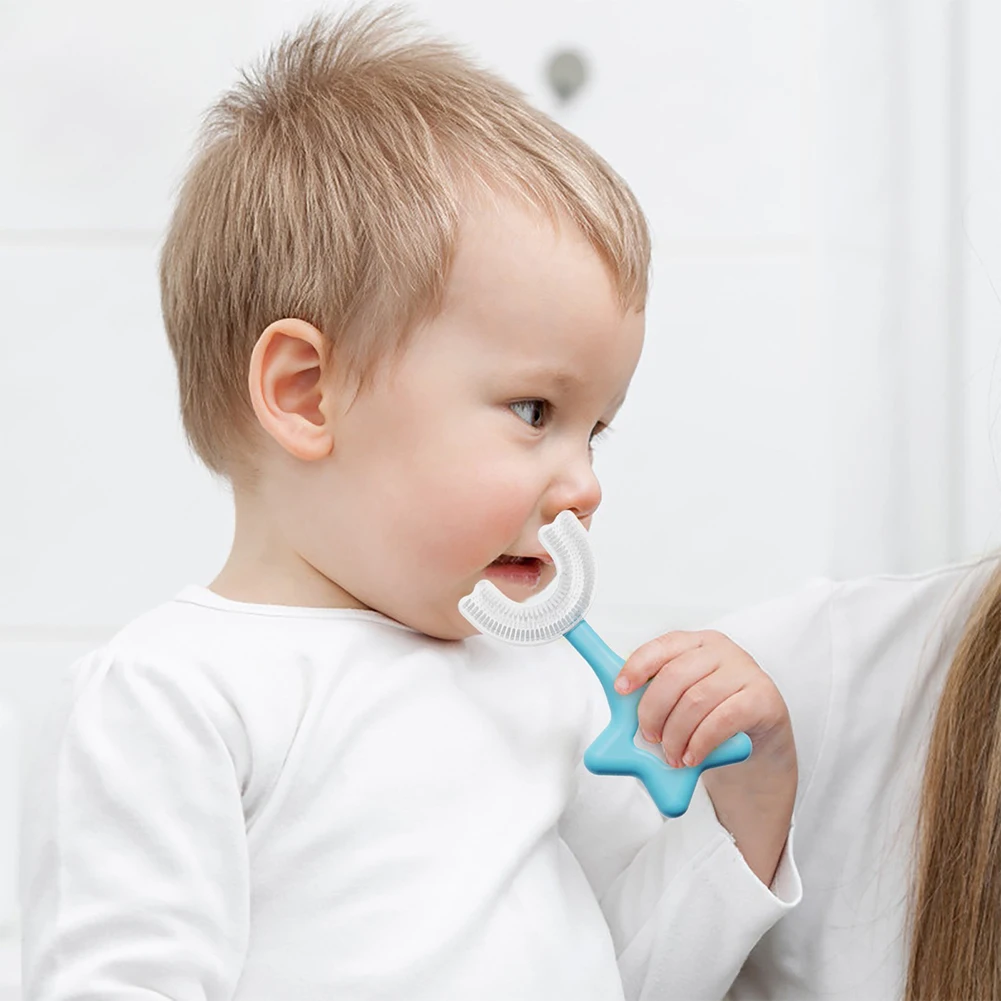 Детская Мягкая силиконовая детская зубная щетка U-образной формы для тщательного очищения зубов на 360